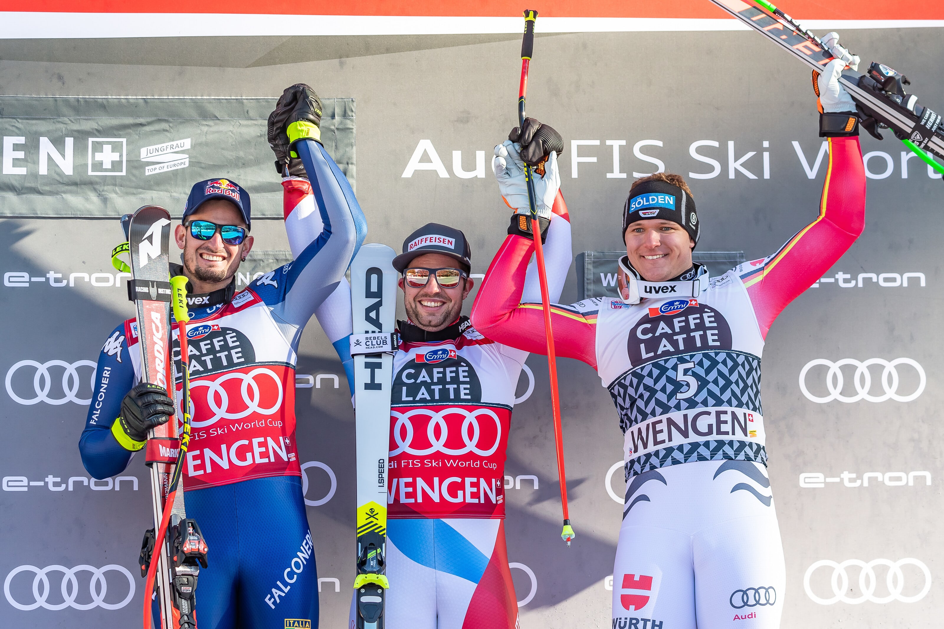 Beat Feuz, Dominik Paris, Thomas Dressen lors de la Coupe du monde à Wengen