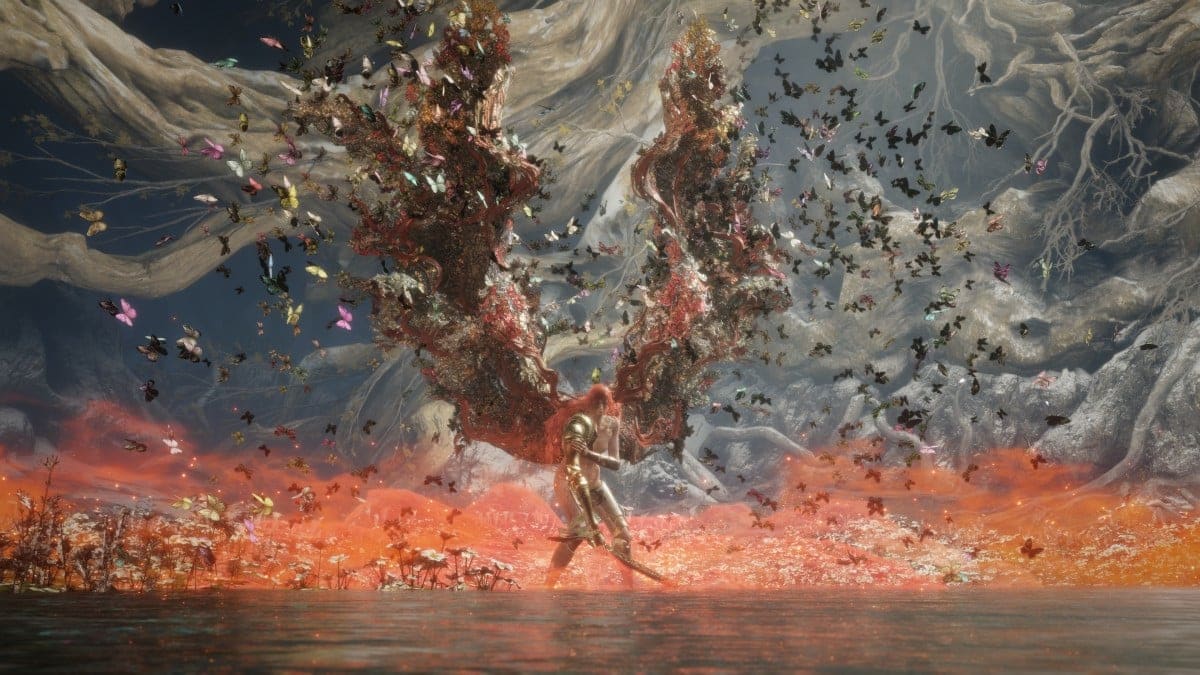 Une fois qu’elle est occupée à combattre l’invocation, employez le sort de votre choix et passez à l’offensive quand vous le pouvez. En P2, la plupart de ses coups l’obligent à rester immobile, offrant de belles opportunités pour le joueur. Il faut tout de même rester concentré, Malenia n’hésitera pas à utiliser à nouveau son attaque chargée ou une nouvelle : elle s’envole à mi-hauteur, se divisant en petits papillons pour invoquer des doubles d’elles qui vous foncent dessus. Peu de temps après, elle vous sautera dessus, soyez donc prêt à l’éviter.