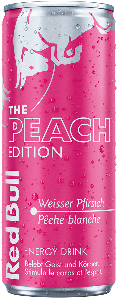 La Red Bull Peach Edition au goût pêche blanche, avec un zeste de citron et de notes florales délicates.