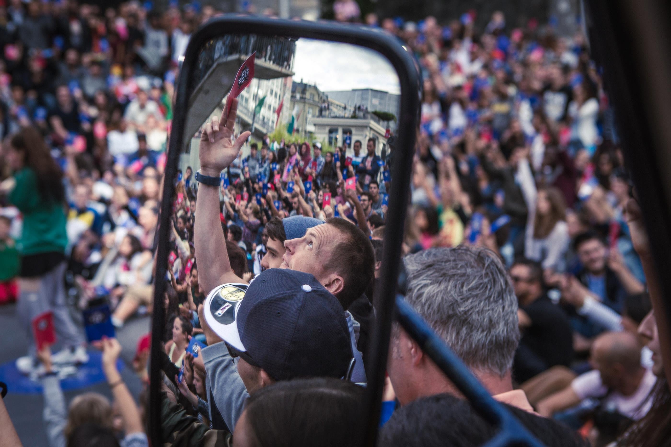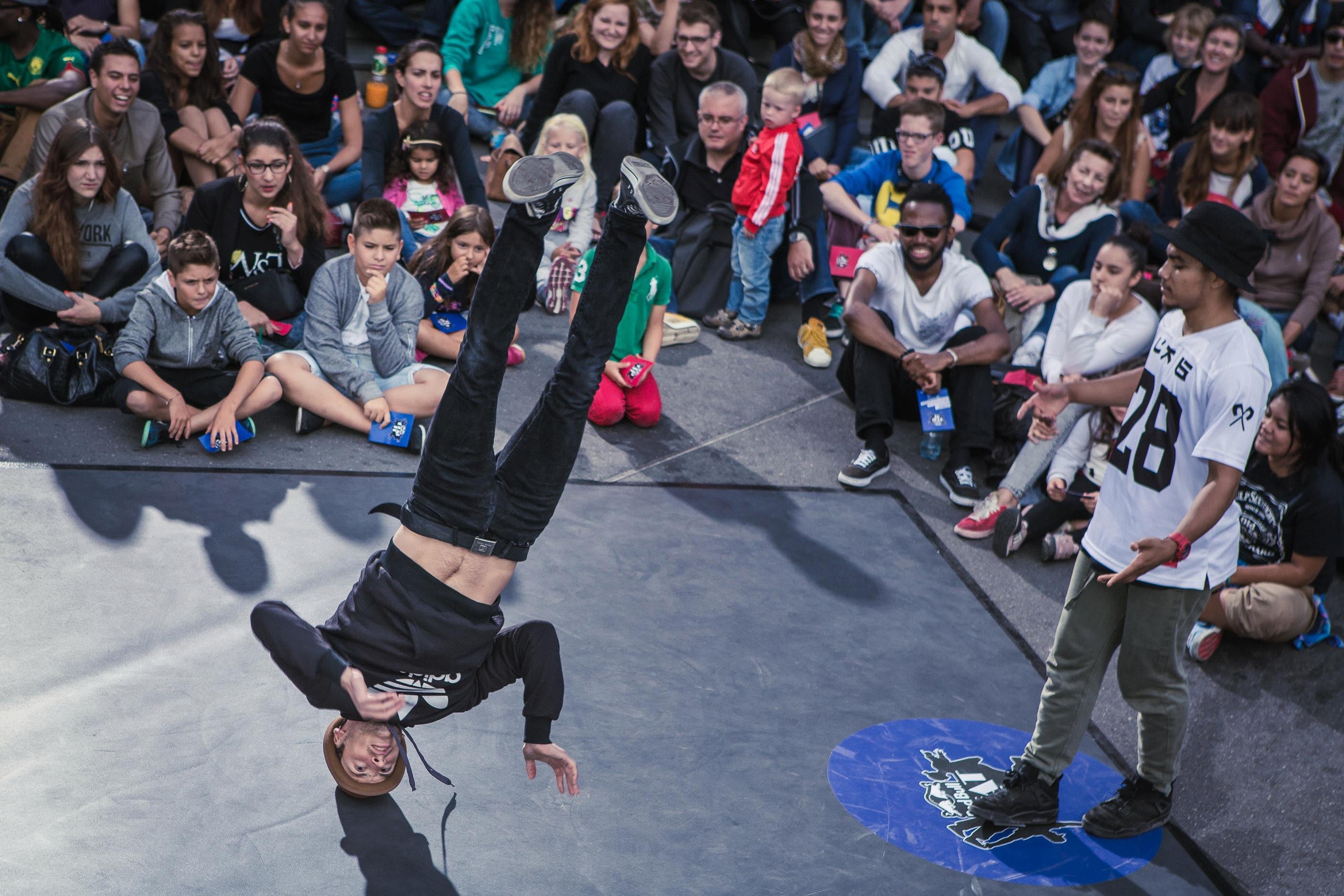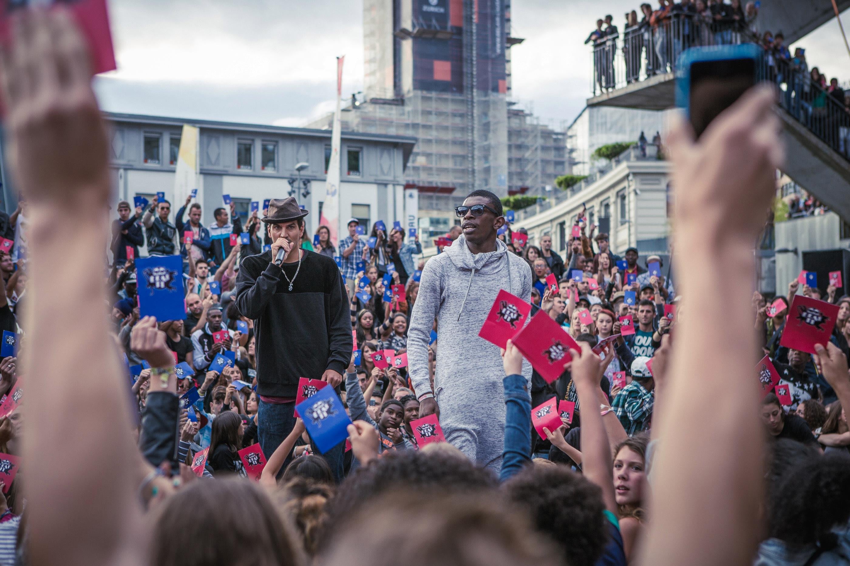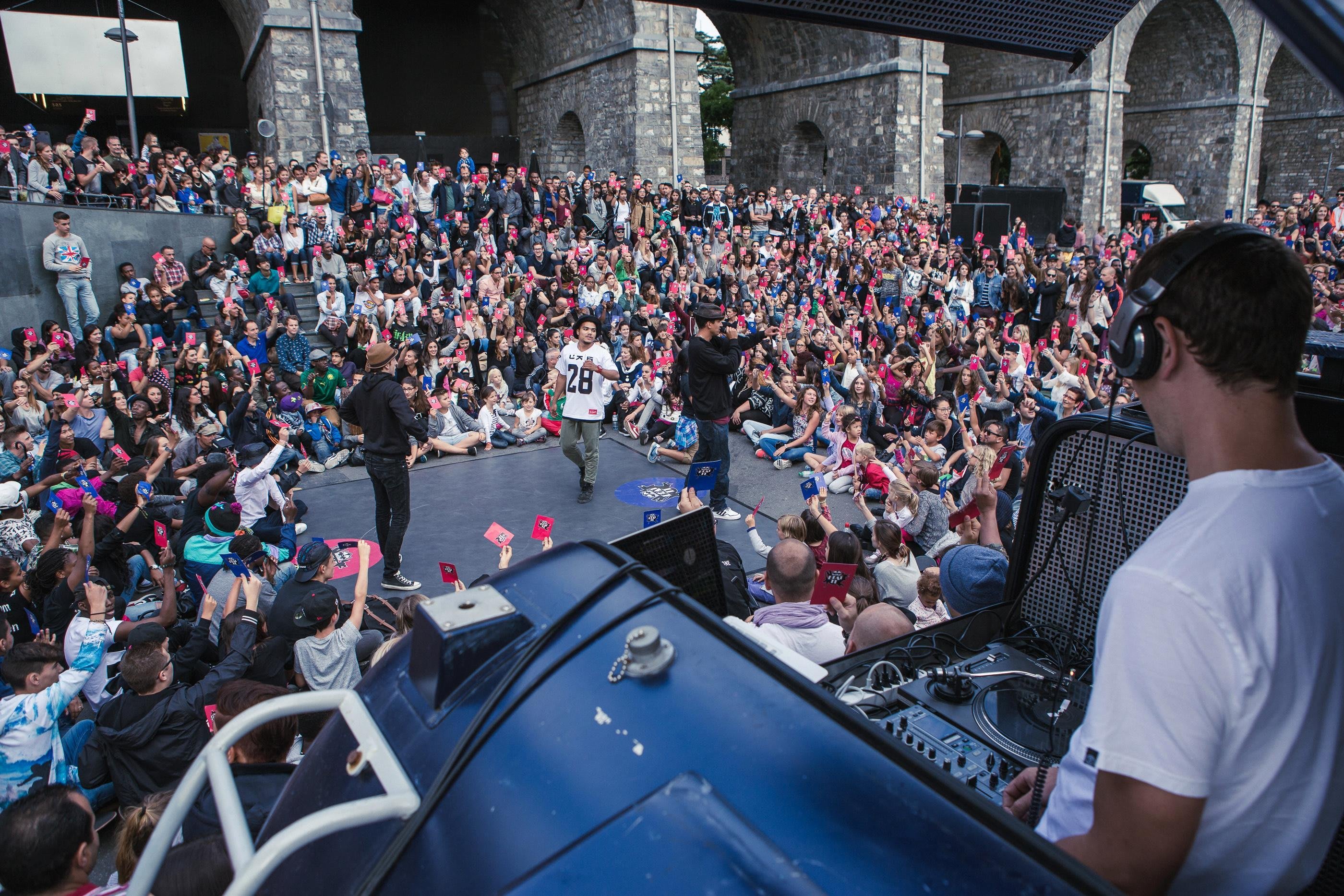 La Place de l’Europe et les ponts qui l’enjambent sont complétement bloqués en cette fin de samedi après-midi. Plus de 2000 spectateurs curieux assistent au rendez-vous de 16 danseurs chevronnés venus de toute la Suisse.