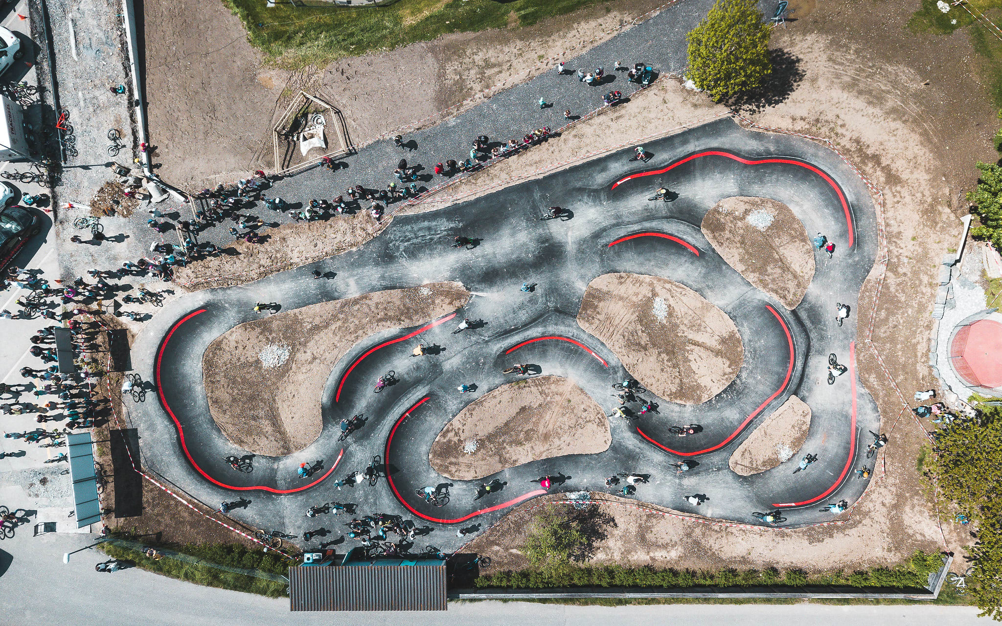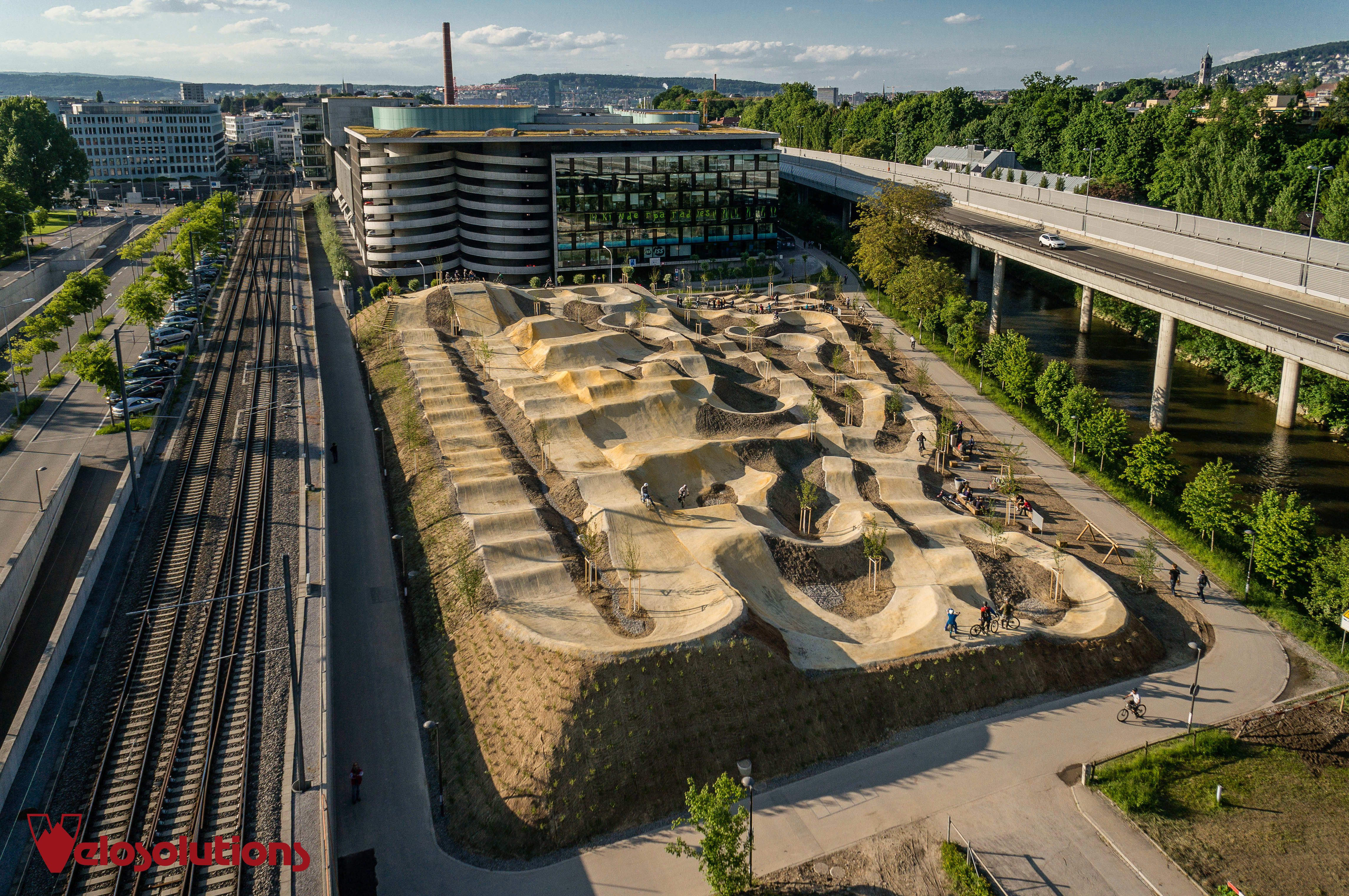 L’un des plus grands pumptracks du monde se trouve à Zurich, au sud du centre commercial Sihlcity. Le bikepark de Zurich offre quatre pistes et trois difficultés différentes qui s’entrelacent et sont codées par couleur sur un tableau d’ensemble : bleu pour facile, rouge pour moyen et noir pour difficile. Une attention particulière a été accordée au matériau de construction. Il s’agit d’un nouveau mélange de terre stabilisé par des joints froids à base de différents graviers et sables, qui offre un coefficient de friction élevé tout en étant capable de supporter facilement de fortes pluies.