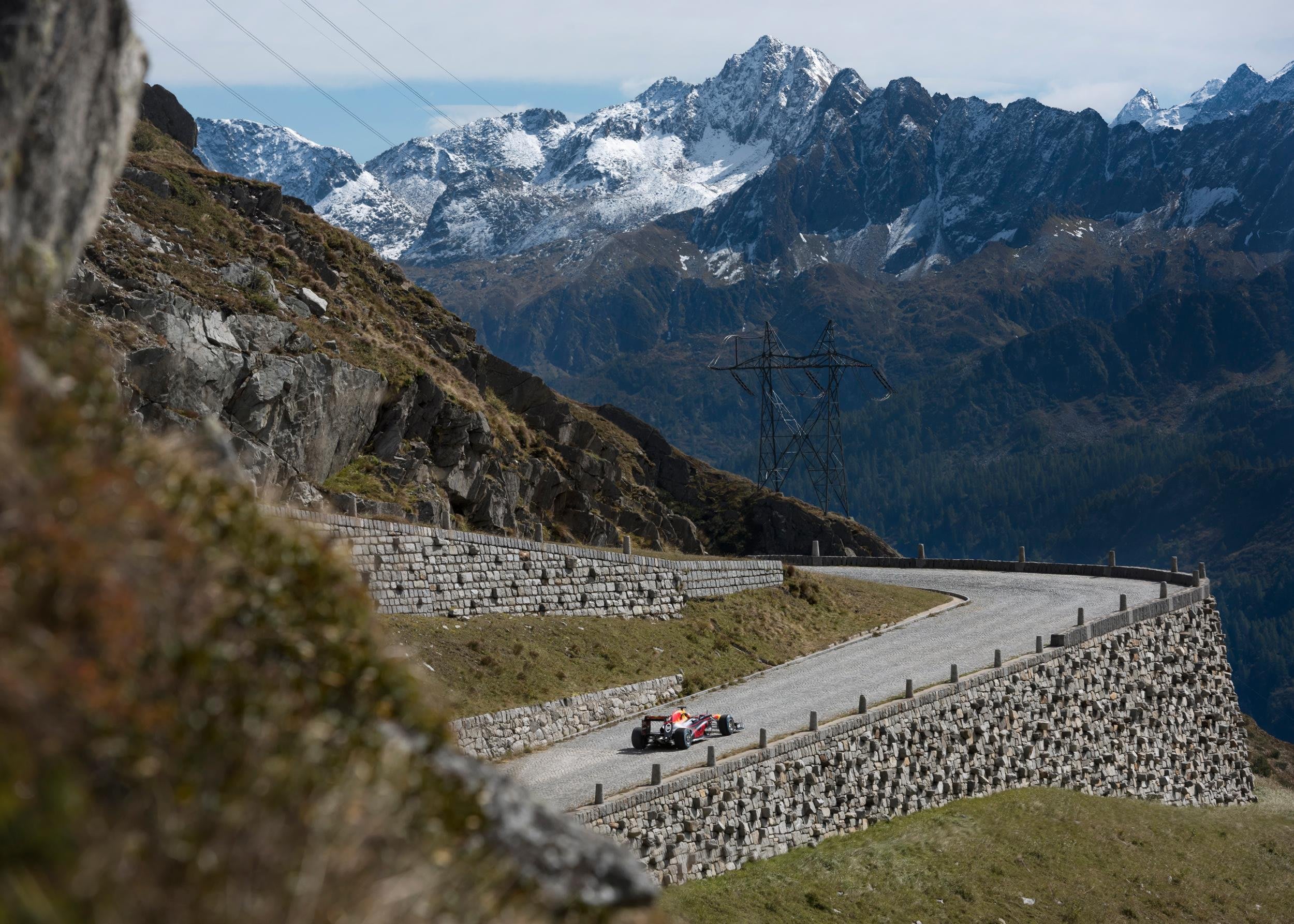La route était très cahoteuse! Je ne pouvais évidemment pas aller aussi vite que sur de l’asphalte. Par contre, la vue était fantastique et je me suis senti privilégié d’y être. Normalement, les voitures de Formule 1 sont interdites en Suisse – alors pour moi, pilote suisse, ça a été une expérience vraiment spéciale.