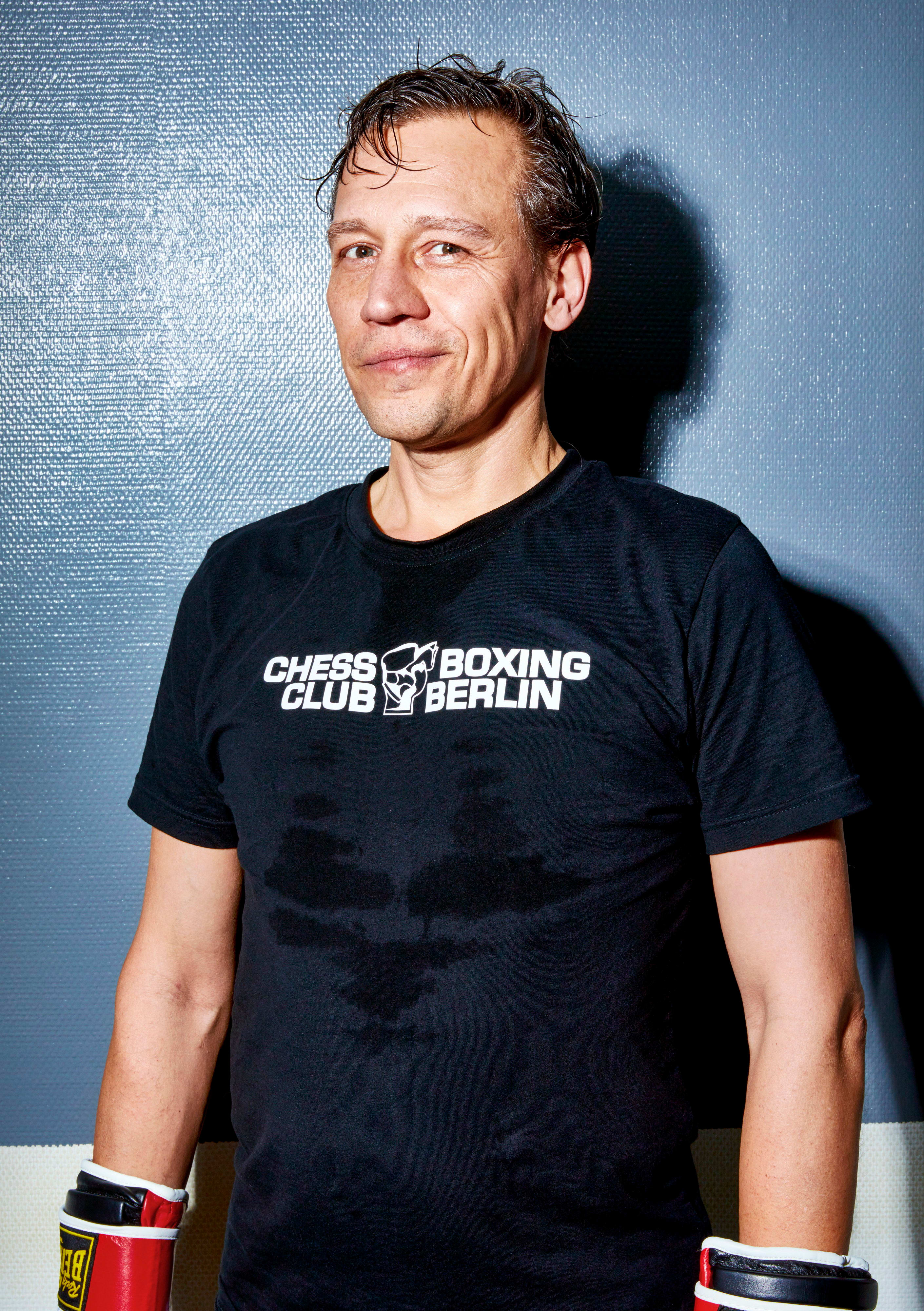 Au lieu de faire un combat de boxe complet suivi d’une partie d’échecs, Rubingh a eu l’idée d’alterner les deux. Le premier club de boxe d’échecs du monde voit rapidement le jour à Berlin, ville d’adoption de Rubingh. Et si les clubs de chessboxing se sont aujourd’hui mondialisés, d’Angleterre en Russie en passant par la Chine, l’Inde et les États- Unis, Berlin est toujours considérée comme le berceau de ce sport. C’est ici, dans le plus ancien club de chessboxing au monde, le Chess Boxing Club Berlin (CBCB), que je dispute mon premier combat.