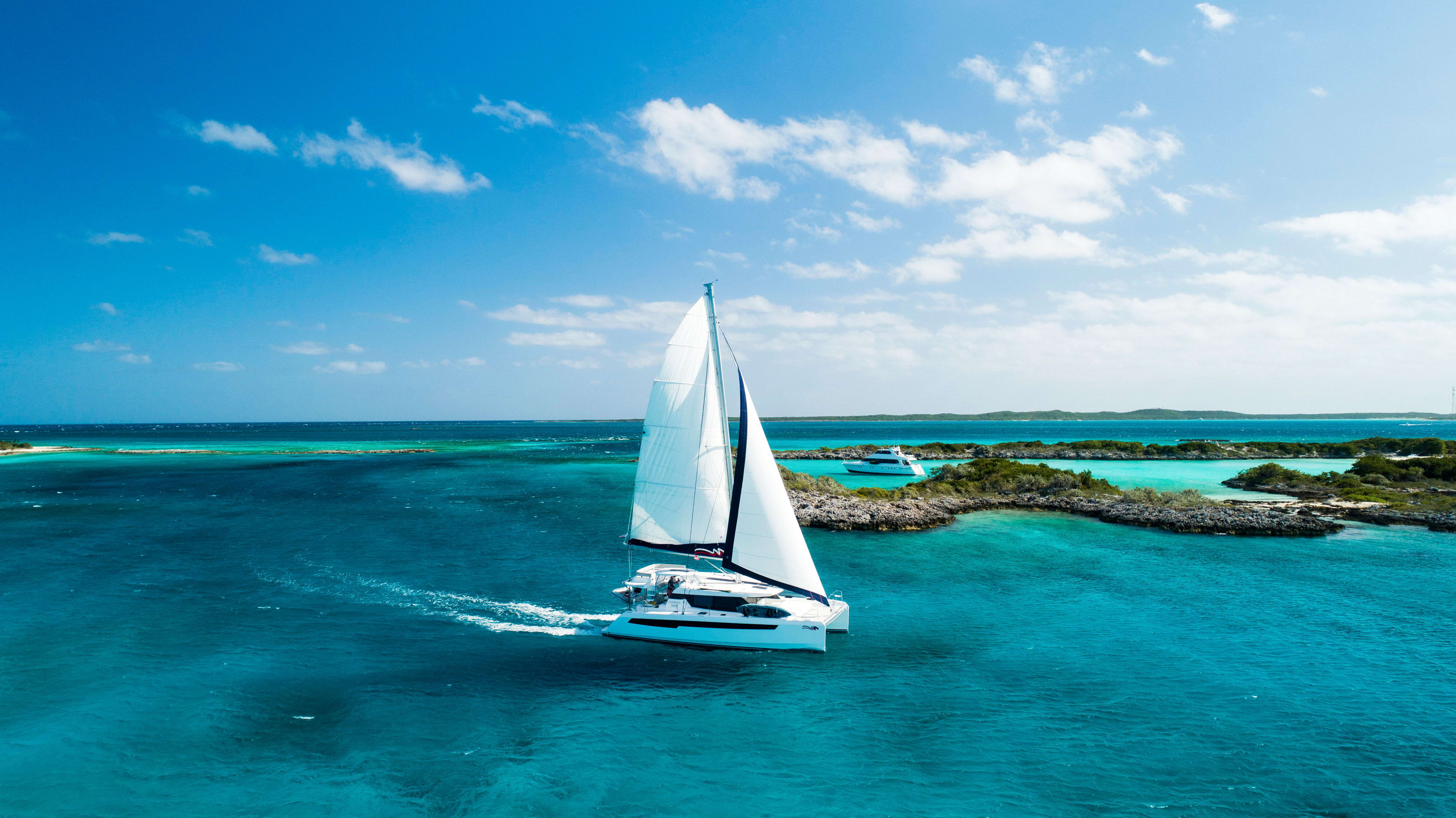 Nous quittons New Providence, île la plus peuplée des Bahamas abritant Nassau, la capitale, pour atteindre Exuma après une traversée mouvementée en pleine mer. Il faut bien quatre à six heures au navigateur le plus aguerri pour atteindre les premières îles situées à 40 miles nautiques (75 km pour les profanes). Nous nous lançons à l’assaut des vagues en compagnie d’Althario, skippeur pour The Moorings, la compagnie qui nous a loué ce luxueux catamaran à voile Moorings 4500. Parfaitement adapté aux particularités de la région, il accueille huit personnes, un important volume d’équipement de plongée et une annexe.