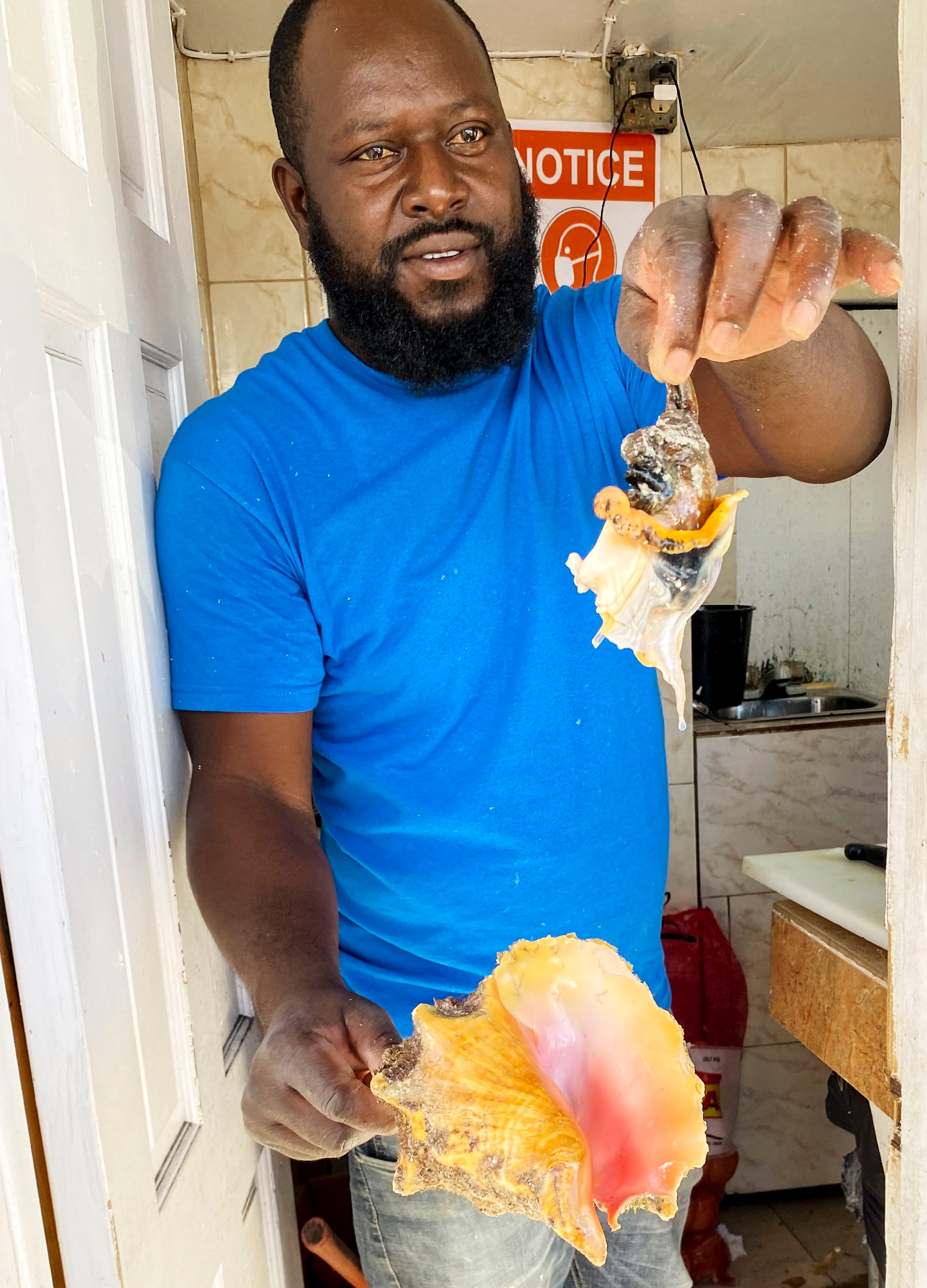 Nos nouveaux compagnons de route, les requins-nourrices, somnolent dans les eaux peu profondes, indifférents aux raies pastenagues, véritables bolides des fonds marins éclairés par le scintillement des conques. Charmant objet de décoration, ce grand escargot marin est également un parfait indicateur de la bonne qualité de l’eau. Et surtout, c’est le plat national des Bahamas. Nous le dégustons frit arrosé de la bière du coin, la Kalik.