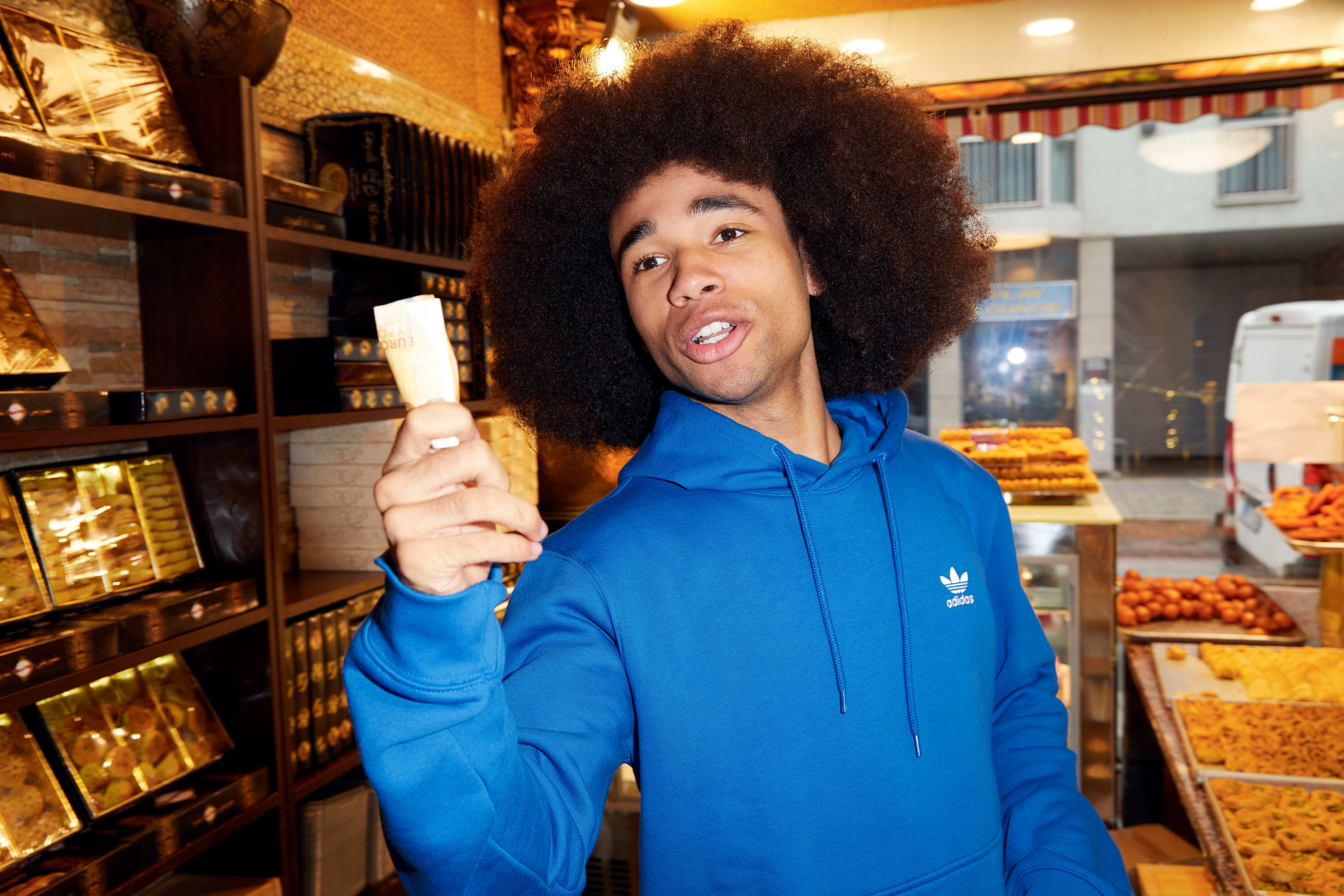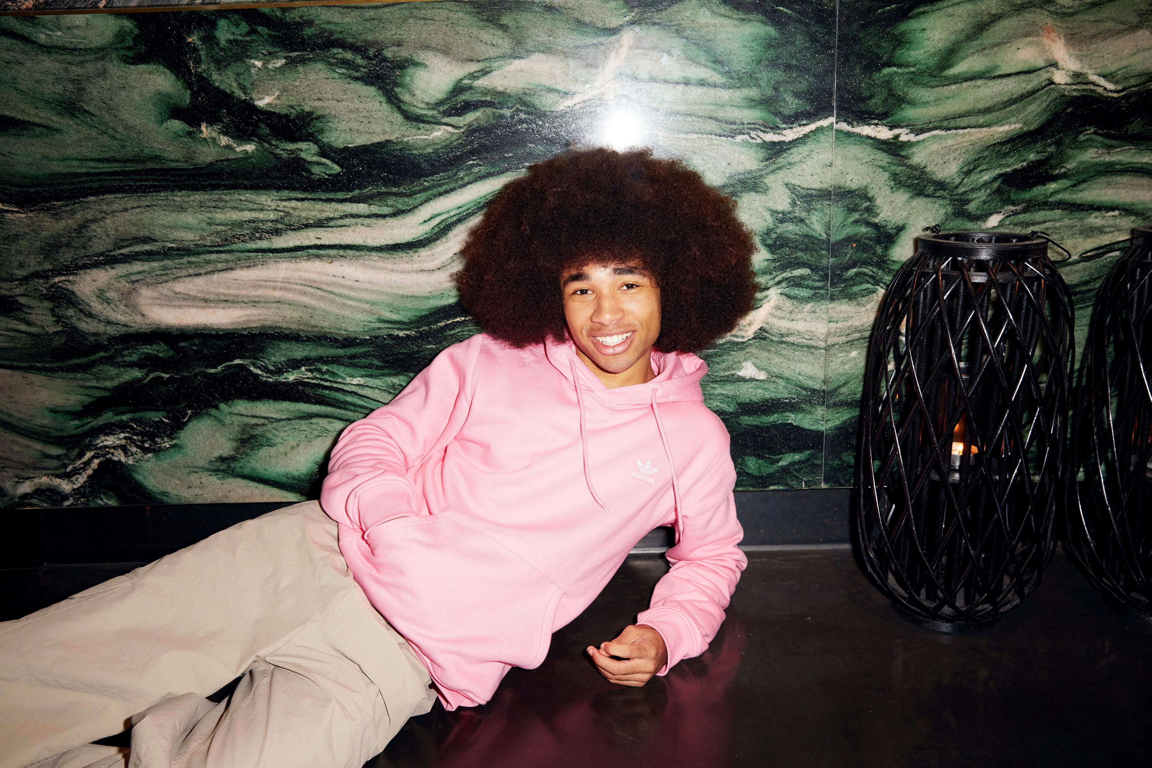 Noel Robinson est devenu un phénomène mondial avec des clips comme celui-ci. Il a des fans partout sur la planète, en Europe, mais surtout en Amérique, en Afrique et, parmi elleux, des célébrités comme Ronaldo et le héros de son enfance, Neymar Jr. Avec sa chaîne @noelgoescrazy, le jeune homme de 22 ans est, depuis des mois, en tête des classements TikTok dans l’espace germanophone. En tant qu’ambassadeur Adidas, il fera la promotion des maillots de l’équipe nationale de football allemande à l’Euro 2024, comme il l’avait fait à la Coupe du monde il y a deux ans. Et Noel lui-même parcourt le monde. Il vient de se rendre à Dubaï, en Arabie Saoudite et en Ouganda pour tourner ses vidéos. Tout cela pour enlever sa capuche et danser ? Pour comprendre la dynamique de l’histoire de Noel, il faut le voir en action. Lorsqu’il fait danser des gens aux quatre coins du monde, qu’il sourit, qu’il surprend avec son geste signature, Free the Afro. La manière dont il distribue gratuitement de la joie dans notre monde si agité et anxiogène est un petit rappel qui montre à quel point il suffit souvent de peu pour être heureux. L’énergie débordante de Noel, sa joie de vivre et sa légèreté inébranlables, ainsi que son envie insatiable de contaminer le plus grand nombre de personnes ont déclenché une sorte de «pandémie de positivité» qui dépasse les frontières et les blocages. Pour lui, le voyage de sa vie ne fait que commencer.