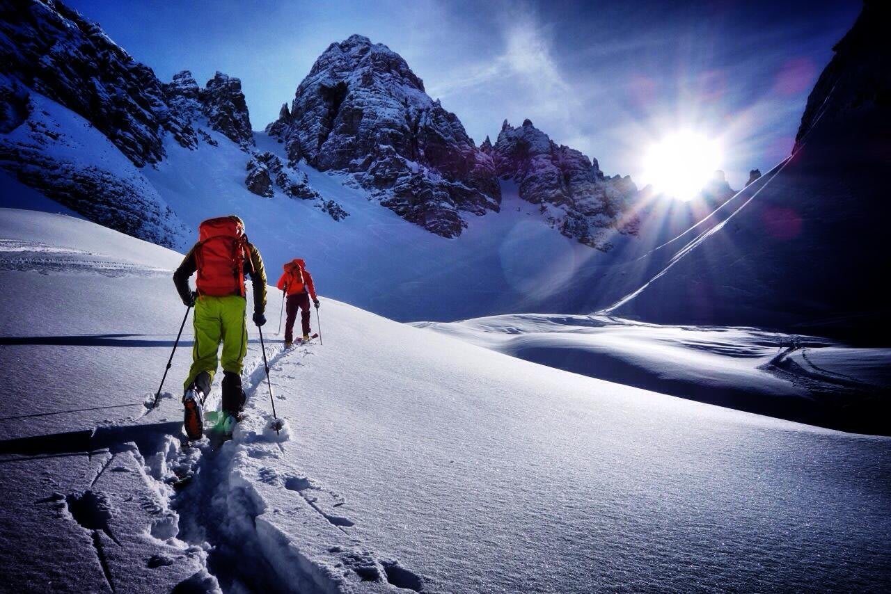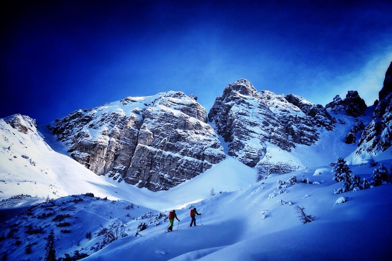 Après environ 500 mètres faciles depuis la station, le Touring se change en pistes non-damées, rien que de la nature. Après avoir pris 300 mètres d’altitude, les derniers arbres sont là et vous arrivez au plateau entre Ampferstein (2.556 mètres) et Marchreisenspitze (2.620 mètres), avec de multiples faces nord parmi lesquelles il n’y a que l’embarras du choix. Lorsqu’il a neigé, elles offrent des pentes à 35 degrés délicieuses.