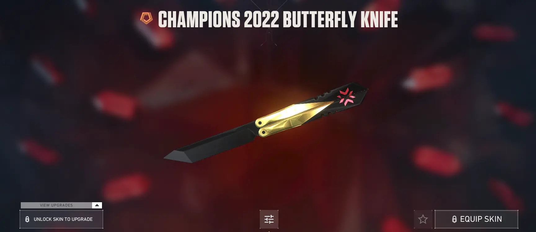 L'un des premiers karambits dans le jeu, qui faisait partie du bundle dédié aux Champions 2021 tout comme la vandal. Il est doté d’une animation rare, le couteau champions 2021 a lancé une hype autour des skins karambit dans le jeu.