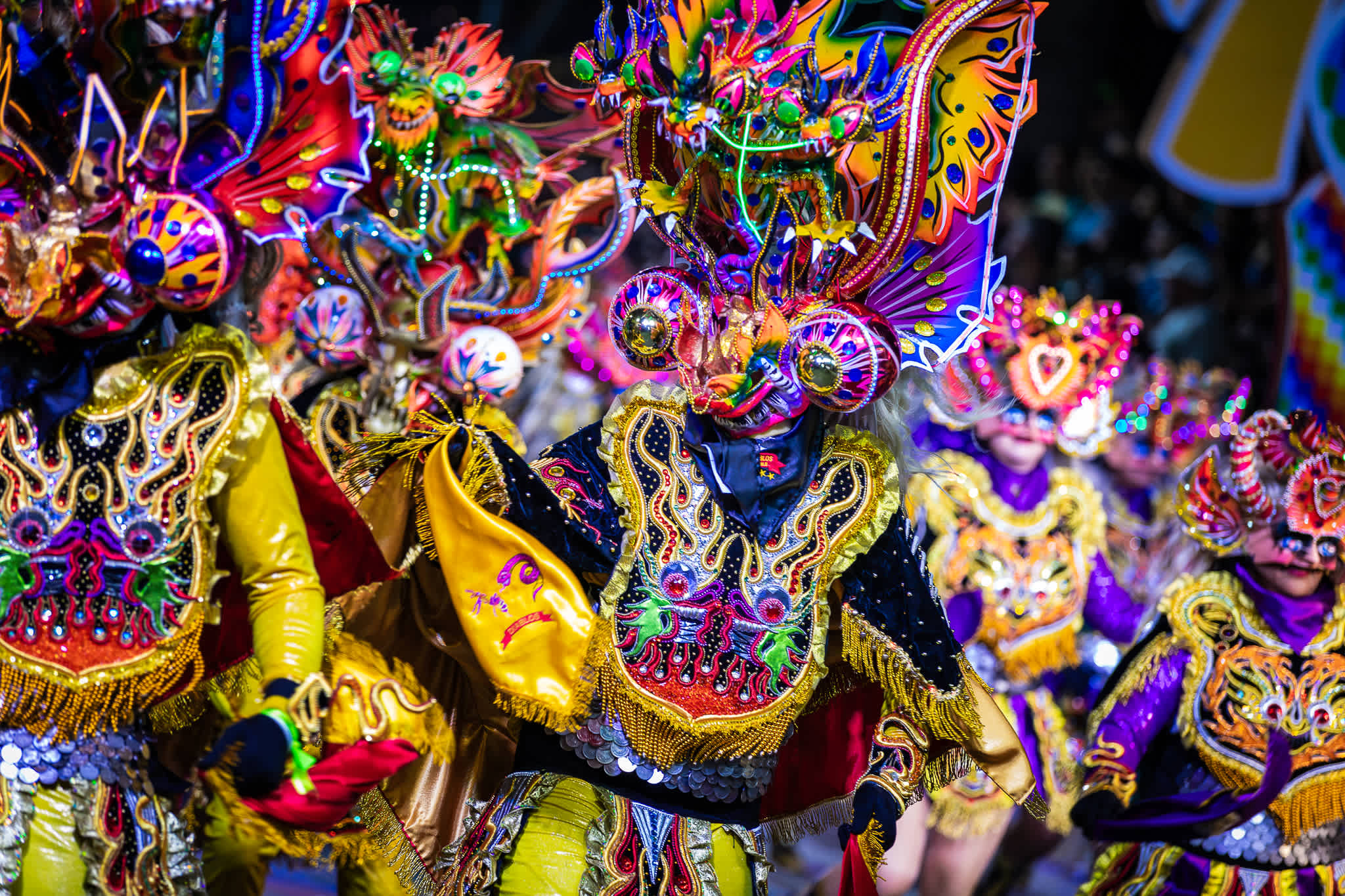 Luis nos cuenta que lo más potente no es solo lo que pasa frente al público, sino lo que se construye detrás y la energía que hay en el ambiente. “Hay muchas personas trabajando detrás de las comparsas, es inspirador de ver”, cuenta.