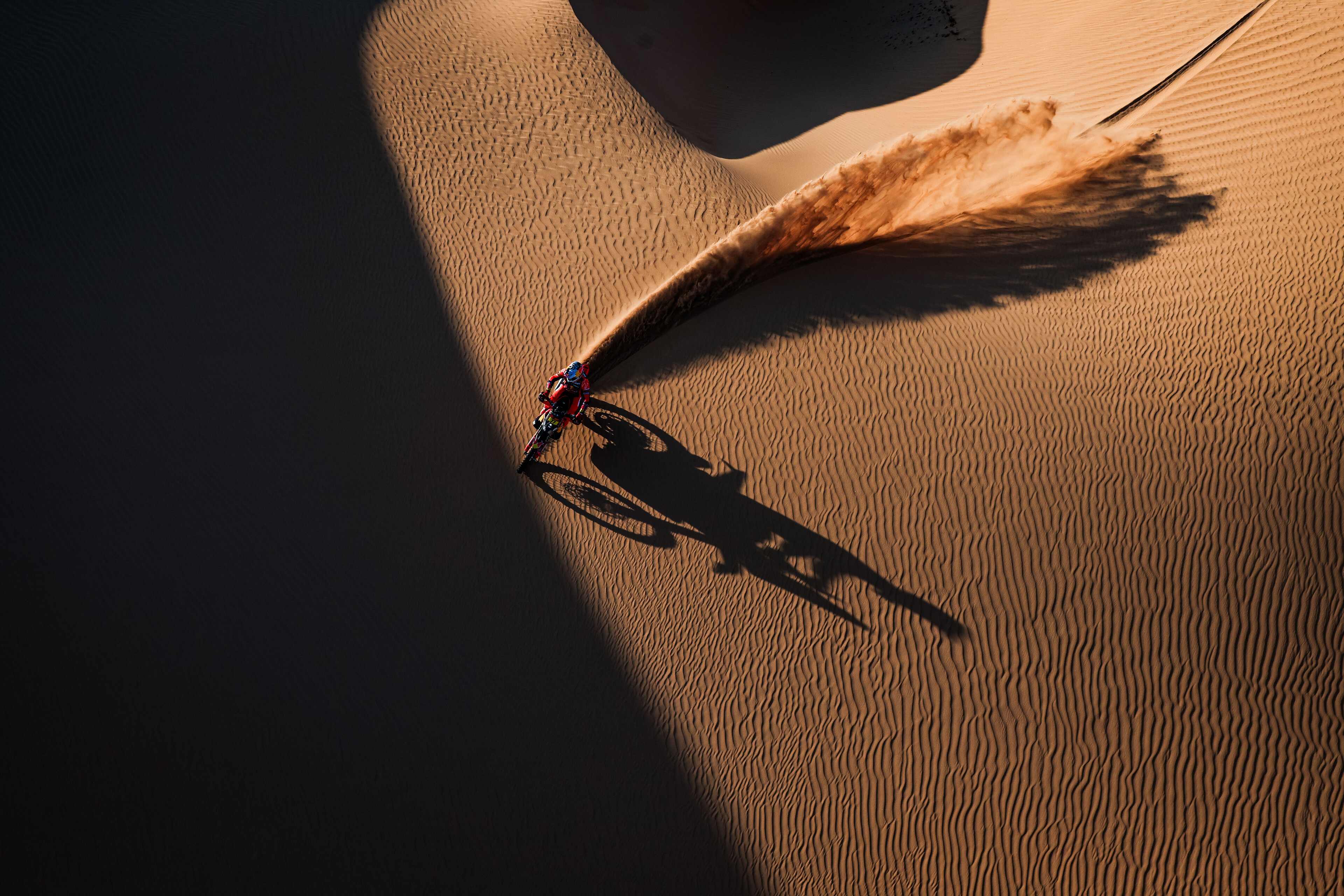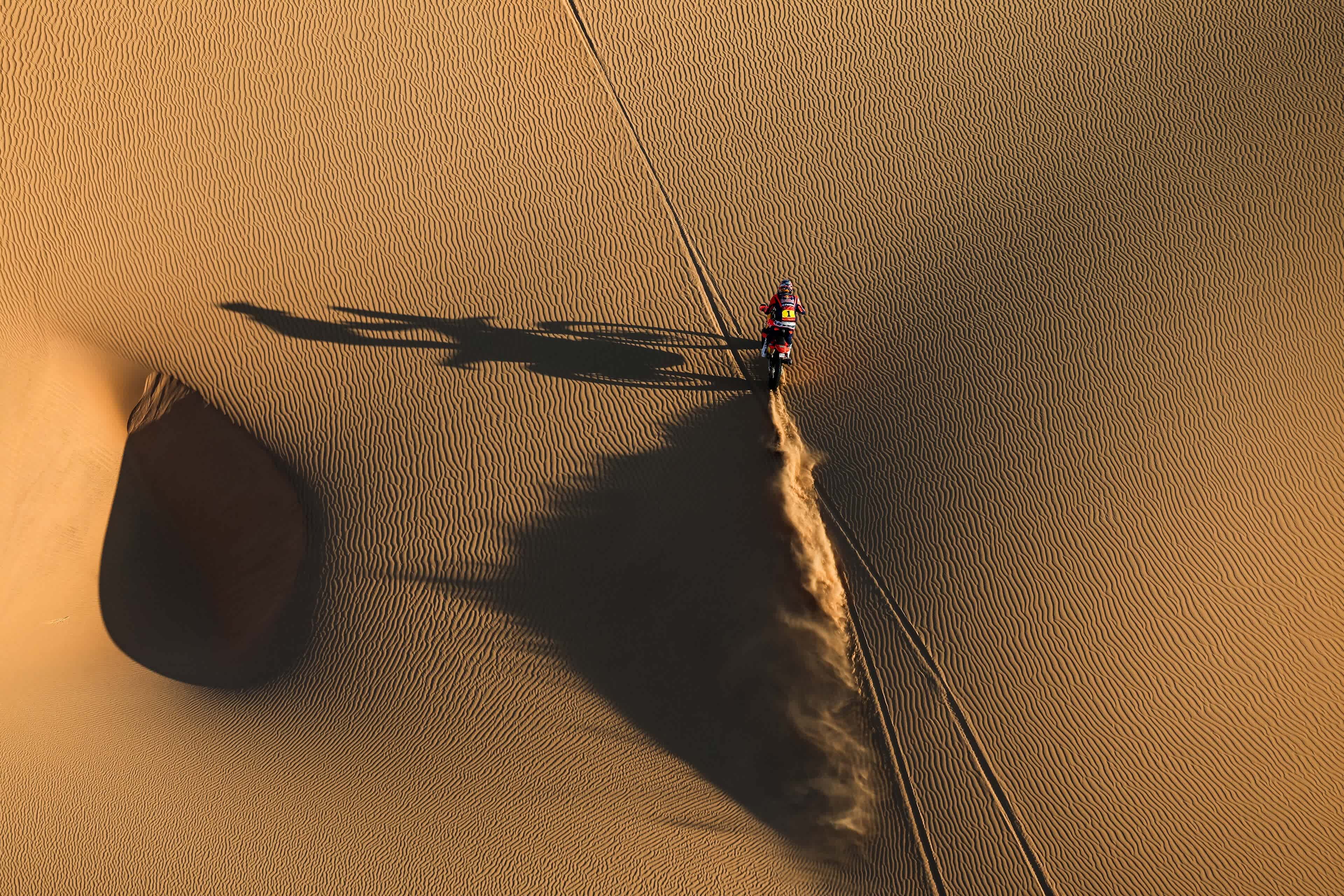En el verdadero espíritu de camaradería del Dakar, su rival de Honda, Ricky Brabec, detuvo su carrera para ayudar al australiano accidentado, asegurándose de que no estuviera en peligro y ayudándolo a levantar su KTM. De manera asombrosa, Sanders recorrió los 200 km restantes por las dunas para completar la etapa pese a las lesiones.