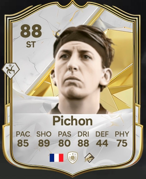 La siguiente exfutbolista en recibir por primera vez una carta icono en FC 25 es la delantera Marinette Pichon. La francesa marcó la friolera de 81 goles en 112 partidos con su país y fue nombrada mejor futbolista francesa del año en 2001. Pichon fue máxima goleadora de su liga en cinco ocasiones a lo largo de su carrera y fue la máxima goleadora de la selección francesa durante mucho tiempo. En FC 25, Pichon tiene una valoración global de 88.