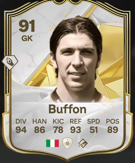 Muchos jugadores también estarán deseando ver a este icono. La leyenda italiana de la portería Gianluigi Buffon está disponible en FC 25. El campeón del mundo en 2006 y actual coordinador de la selección italiana tiene una valoración global de 91. Creemos que Gigi podría convertirse en uno de los nuevos iconos más populares de FC 25.