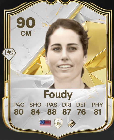 Julie Foudy contribuyó a dar forma a una época gloriosa de la selección femenina de Estados Unidos. Dos veces campeona del mundo y campeona olímpica entre 1991 y 2004, Foudy capitaneó a Estados Unidos sobre el terreno de juego entre 2000 y 2004. Ahora ha sido galardonada con un Icono en FC 25, con una puntuación global de 90.