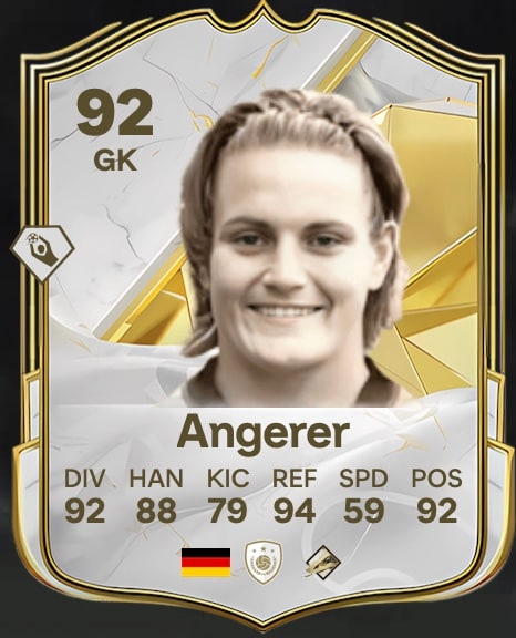 Nadine Angerer, icono alemán entre los tres palos, recibe una valoración global aún más alta. La exjugadora Mundial de la FIFA, campeona del mundo y campeona de Europa ha recibido una valoración global de 92 puntos. Esto la convierte en la mejor valorada de los ocho nuevos iconos de FC 25.