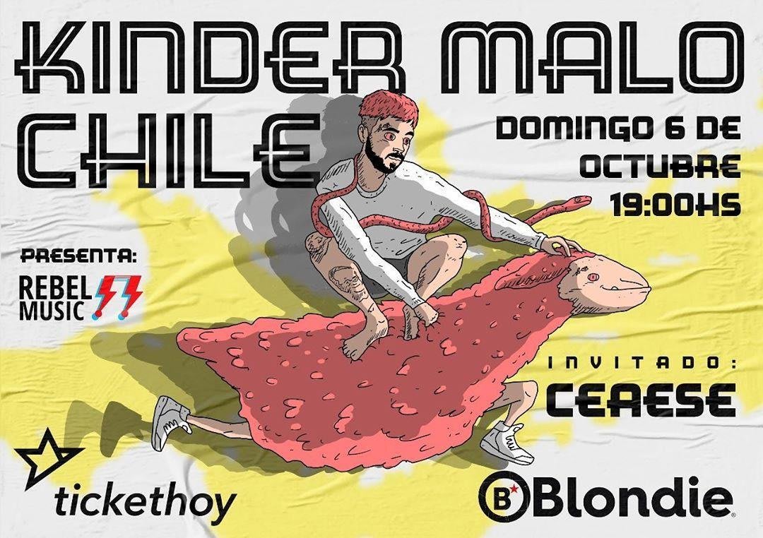 Kinder Malo debutó en Chile junto a su hermano en abril del año pasado. Sobre su próxima presentación en nuestro país, el 6 de octubre en Blondie, remata: "Voy a mostrar rabia, dolor, alegría, euforia en el show. La vez que estuve allí el público me recibió mejor de lo que me esperaba. Y espero que esta vez sea igual o mejor".