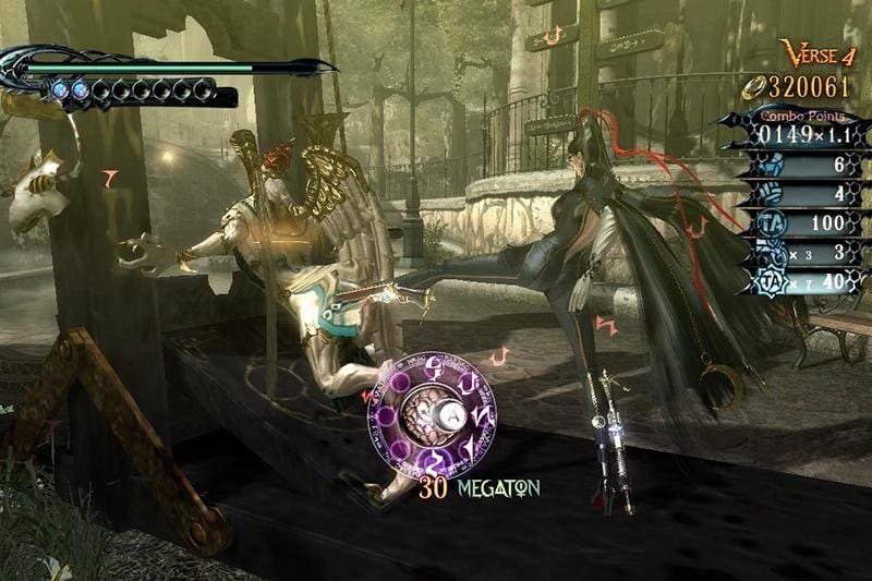 Bayonetta tiene distintos tipos de combos que podrás practicar en el tutorial y entre las cargas de escenarios. Al final de cada nivel tendrás una evaluación de tu desempeño en combate, este toma en cuenta tus combos, el tiempo que demoraste y los daños que sufriste, entre otros factores.
