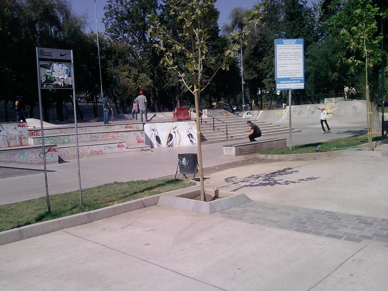 Si quieres saber como llegar haz click acá.Este es el segundo Skatepark Público en la historia de nuestro país, nuevamente en un parque público y al interior de un pulmón verde de la capital. A un costado del Parque O'higgins, mas pegado a la carretera, se encuentra el circuito que tiene para todos los niveles. Un gran Bowl, set de escaleras, secuencia de escalones y barandas.
