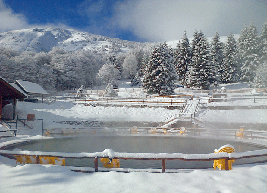 Las aguas termales son otro importante atractivo de este lugar. Ofrece piscinas termales de azufre y hierro con una temperatura en torno a los 38° mientras todo esta nevado a tu alrededor , inmejorable. Desde $10.000 CLP