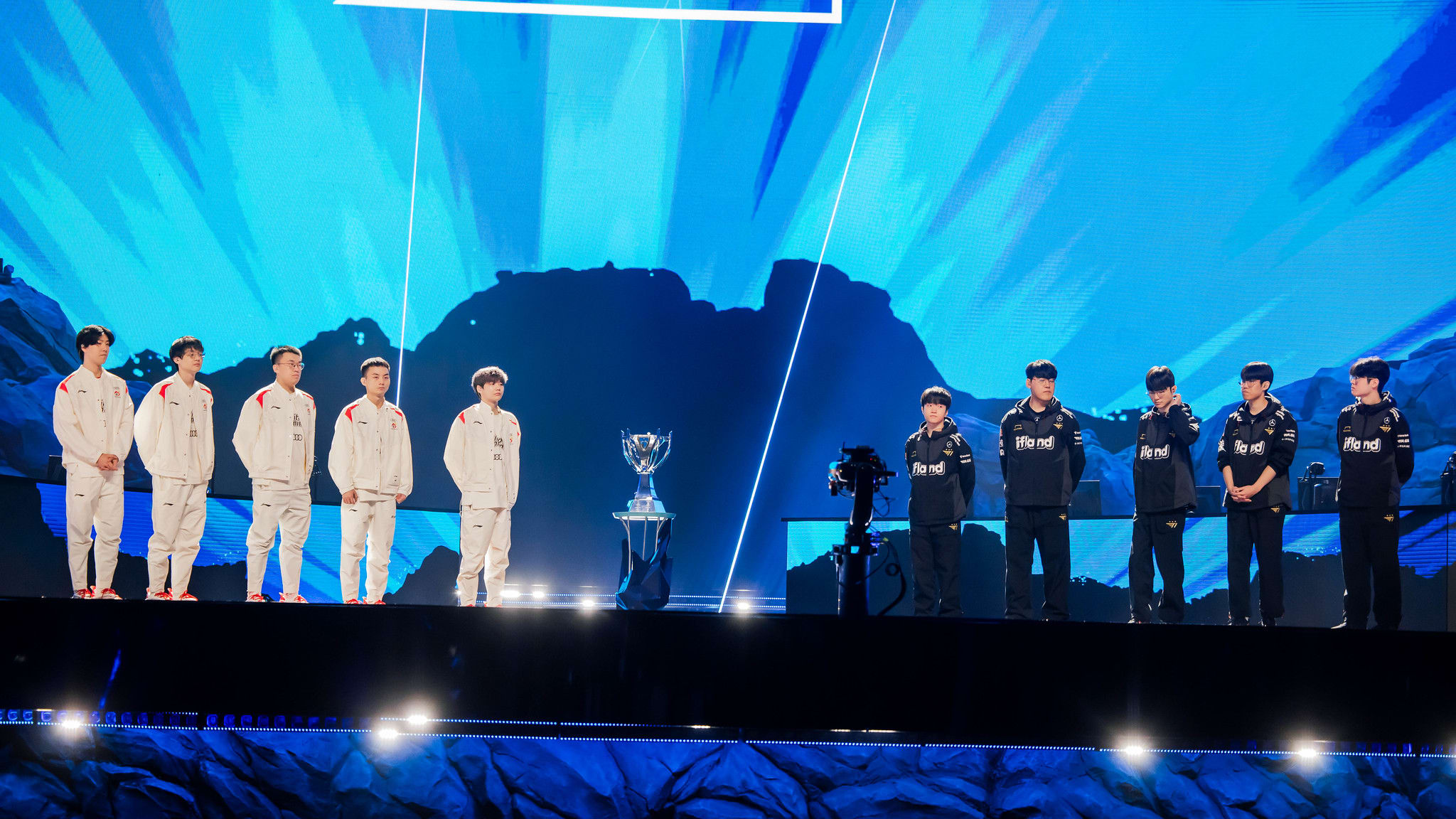 整个开幕式期间,穹顶内都充满了能量,但选手和粉丝们都迫不及待地想看到这场他们期待了数周的对决的结果。T1 继续打自己的比赛,在第一场比赛中用非主流选手 Yone 换下了 Choi 'Zeus' Woo-je。WBG 的 Kang 'TheShy' Seung-lok 选择了亚托克斯,Senna 和 Tahm Kench 在机器人线上。
