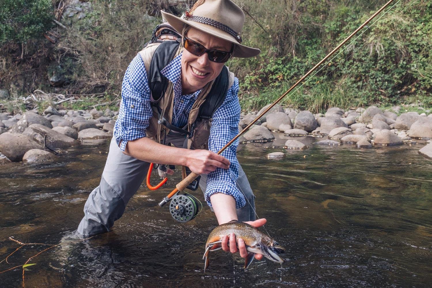 让自己走进水深及腰的河里,并利用钓竿摆动,将绑在钓在线的诱饵,模仿成如苍蝇挣扎般数小时,就只为了让一条饥饿许久的鱼上钩,钓鱼所培养出的耐心可见一斑。前往距离墨尔本东部约两小时车程的Rubicon河川,在这里你将会找到像来自澳洲的Charley May,这样与鱼群和河流悠游的钓手。而当我们和她在水中一同享受钓鱼的五小时后,May缓缓说出她迷上这项户外运动的理由。