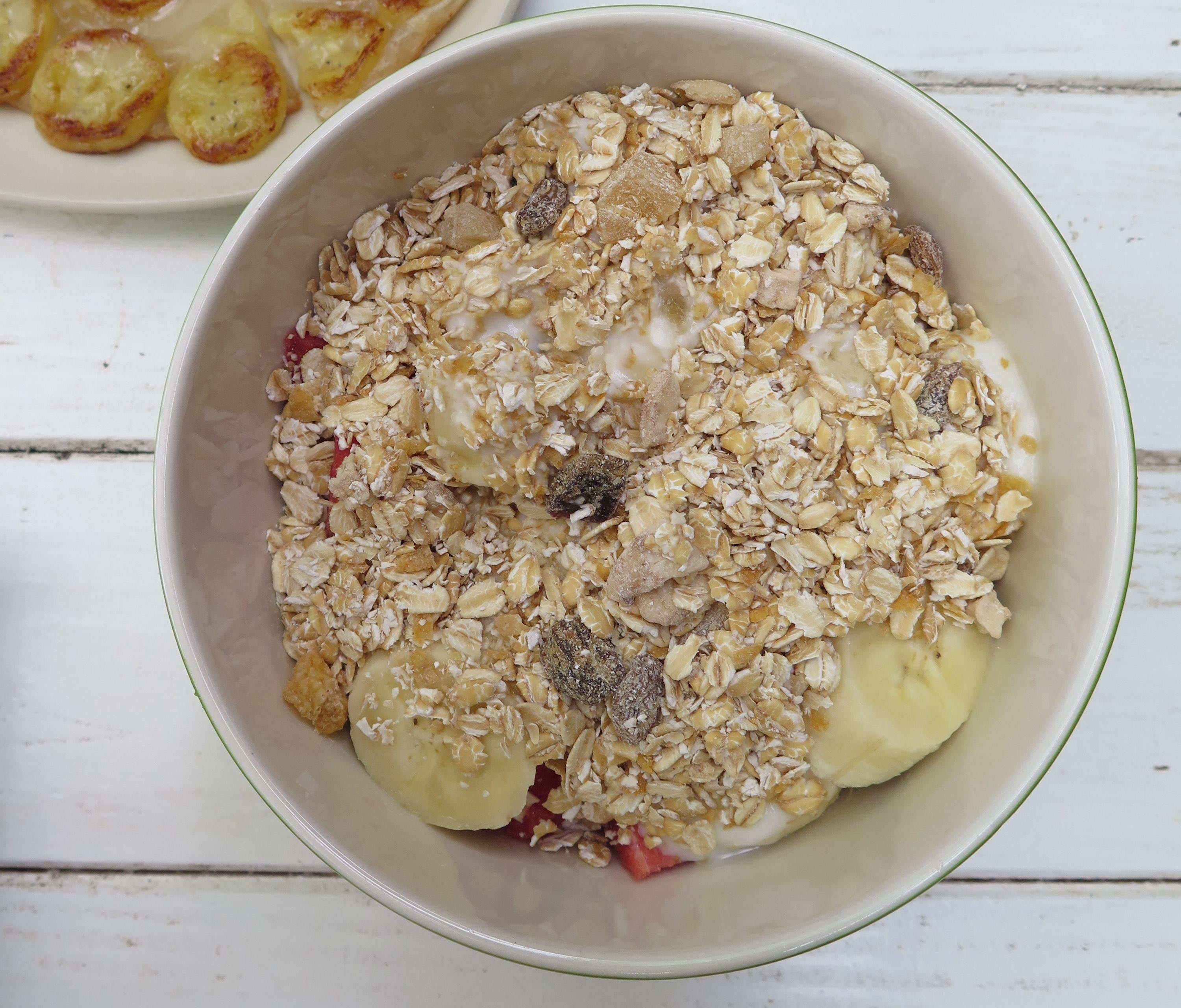 • 早餐:隔夜燕麦。我们可将燕麦、牛奶混合浸泡放进冰箱过夜,隔天一早加入香蕉片、新鲜浆果和一些烤杏仁或选择荷包蛋和酪梨吐司,也可满足一般人对于力量训练后的恢复需求。