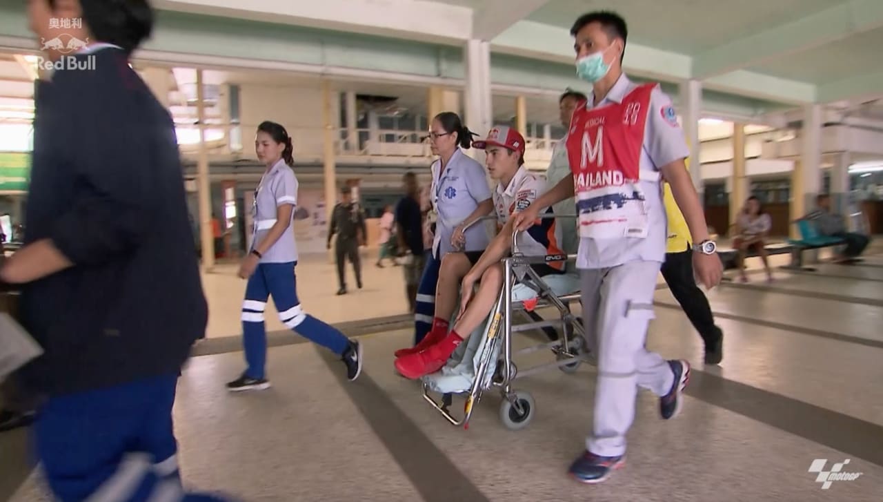 作为追求极限的MotoGP™赛事,车手受伤的概率则更大,马克也不例外。