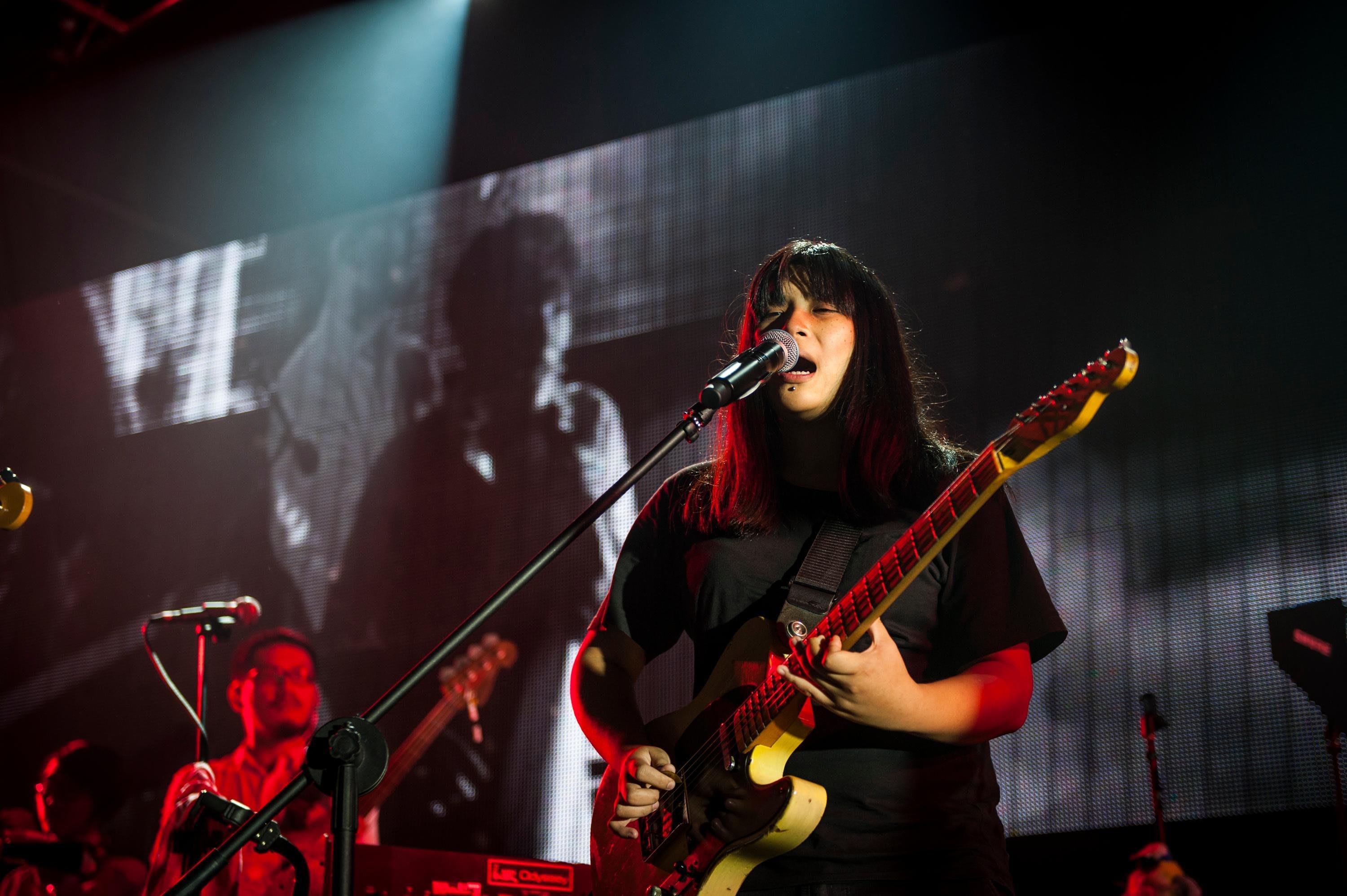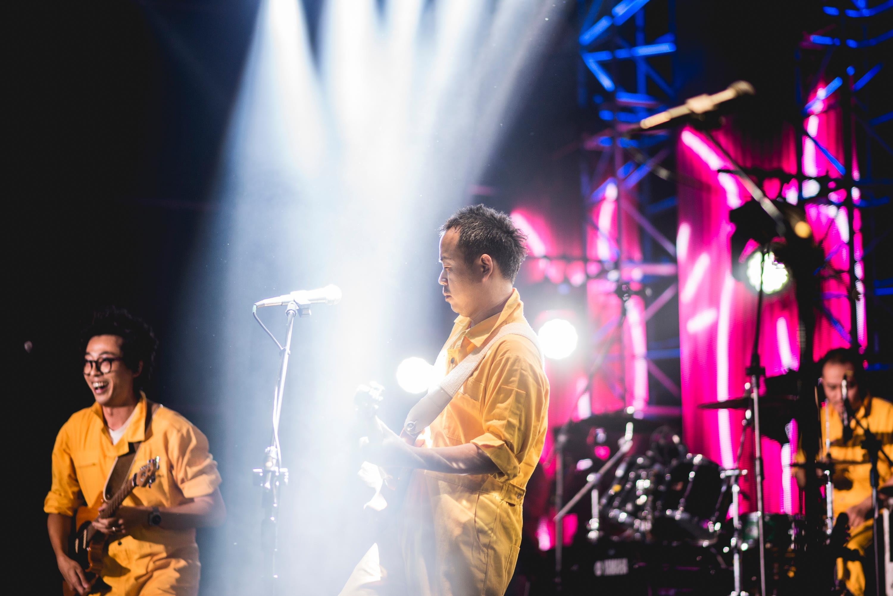 轮到糯米团登场,外加键盘乐手和三位管乐手的华丽风格,一上场就不饶人地向对面舞台的魏如萱呛声。第一首应景高唱《星期六晚上你要带我去哪边》,姜果然是老的辣,糯米团成员彼此的默契证明他们的现场表演功力,无缝接轨且气韵流畅地接着演唱《苍蝇女郎》和《青春小鸟》,让期盼他们演出已久的观众们都开心不已。