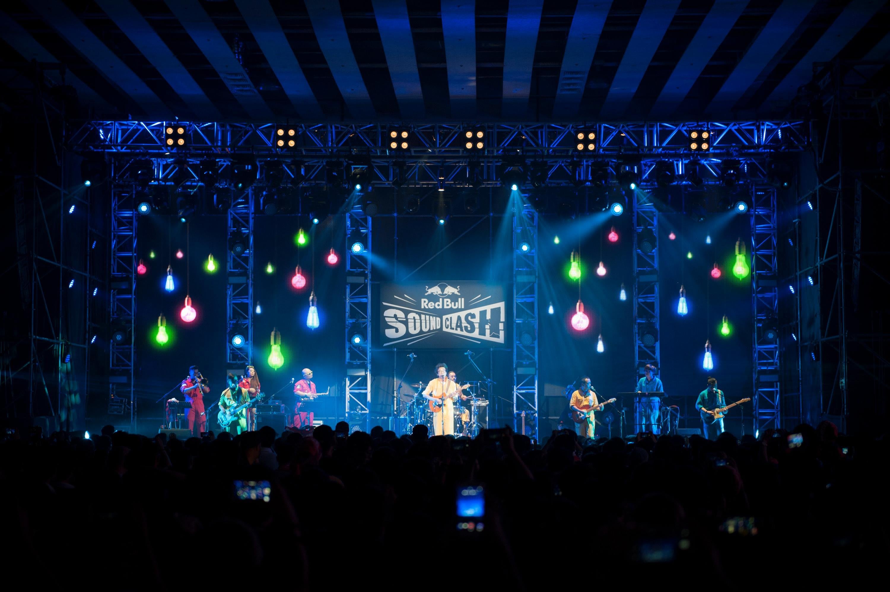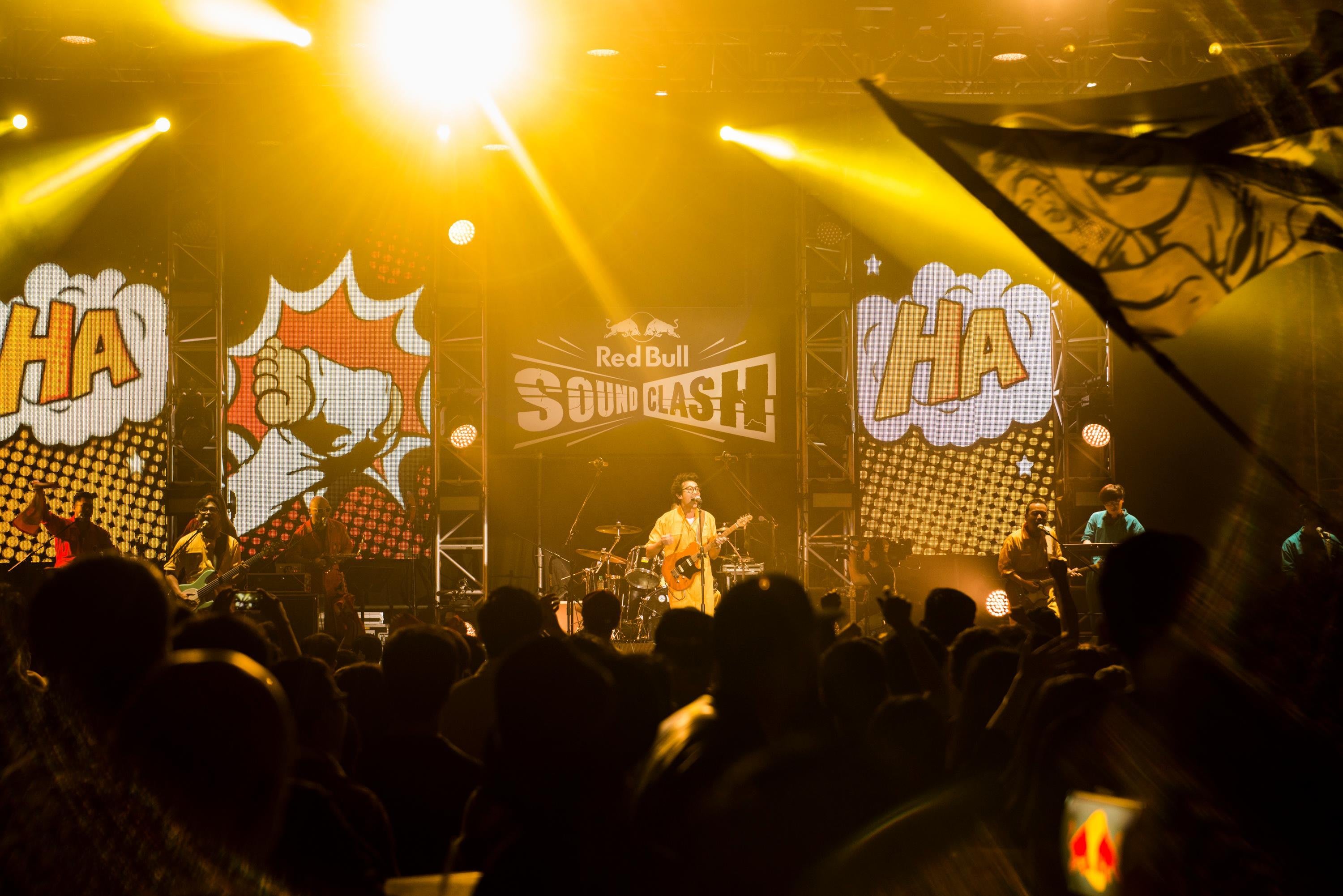 一场演唱会、两组乐队、三个舞台、四道关卡、五回合的挑战,自由变换各式风格、挑战翻唱精髓的Red Bull Soundclash台湾首场演唱会终于在周六晚上重装登场。由2015年Red Bull Thre3style DJ大赛台湾区冠军DJ Mr. Skin(赖皮)为演唱会开场,咦?不是表演唱歌哟,而是先为入场观众放歌,让大家先感受派对气氛然后迎接重头戏。Mr. Skin将他今年推广有成的“国语作业簿”派对音乐搬进演唱会,放送中文歌串烧,从草蜢、小虎队、郭富城到张惠妹、周杰伦和李英宏的“台北直直撞”,歌曲风格应有尽有。