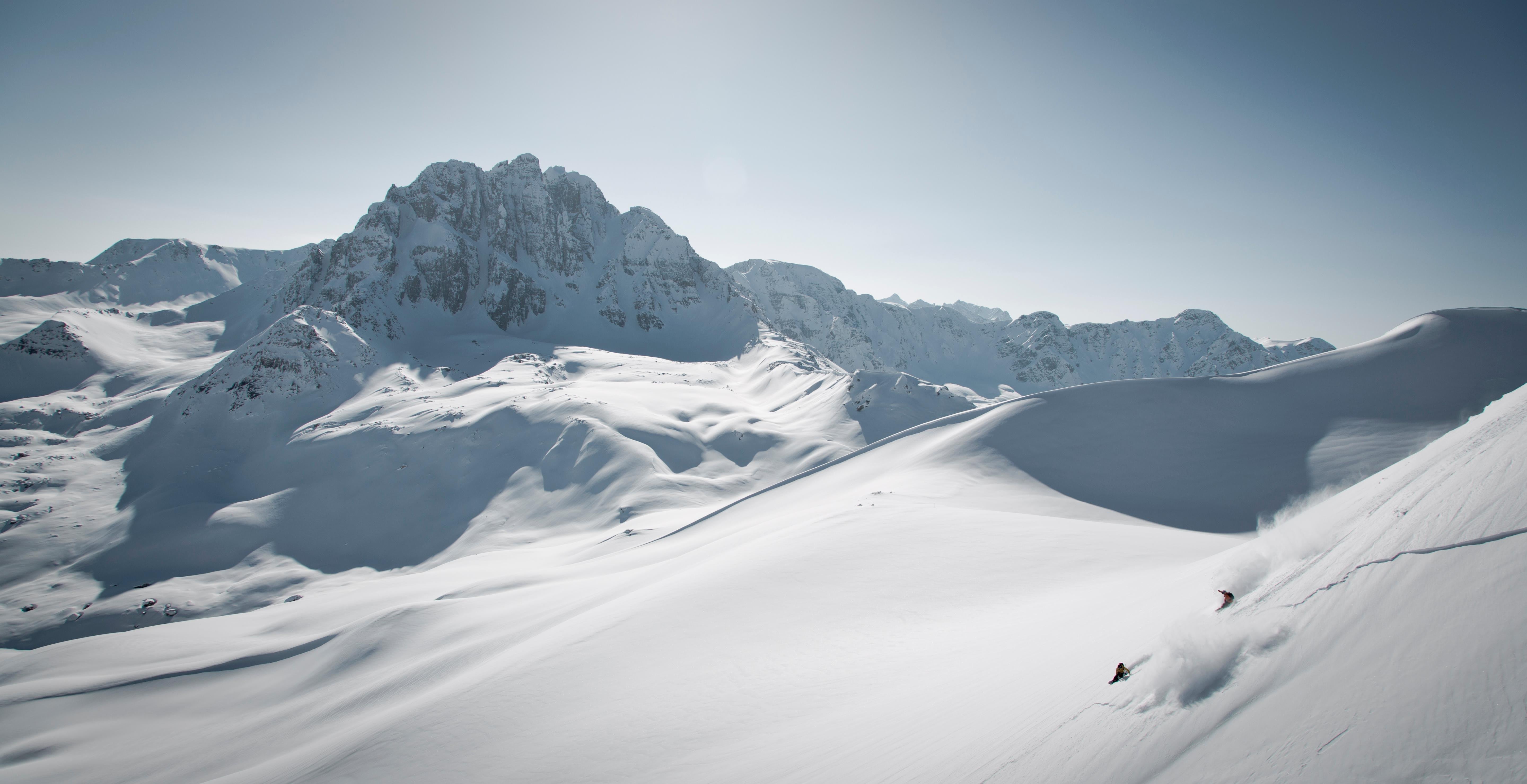 单板滑雪带我走遍了世界上许多滑雪胜地,但在这样神奇的雪山玩单板,我还是第一次,我从没见过这样壮阔的雪景。– Elias Elhardt