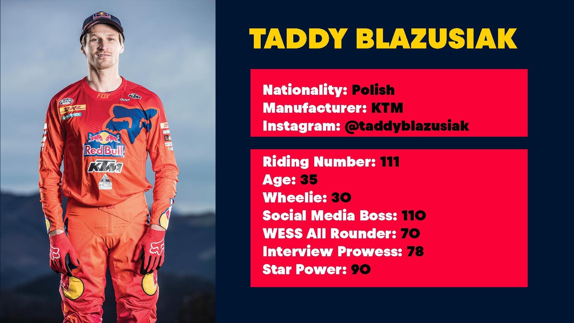 En la cima durante casi una década, Taddy Blazusiak ha ganado dentro y fuera de las carreras. Un piloto con un ardiente deseo de competir y ganar, el polaco redujo su retiro para volver a competir en 2018. No te equivoques, Blazusiak siempre apunta al escalón más alto del podio.