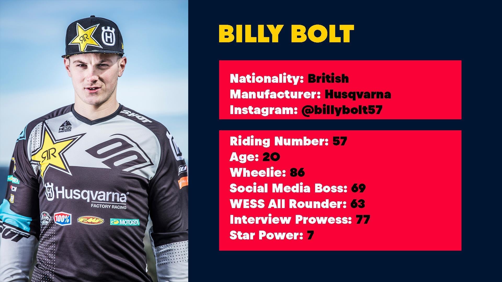 Billy Bolt es el más descarado del paddock y parte de la próxima generación de pilotos. Aunque todavía es temprano en su carrera, Bolt está empezando a salir a la palestra. Está trabajando duro para hacerse un nombre en este deporte e incluso puede darle a Jarvis una sorpresa en este edición de la Romaniacs.