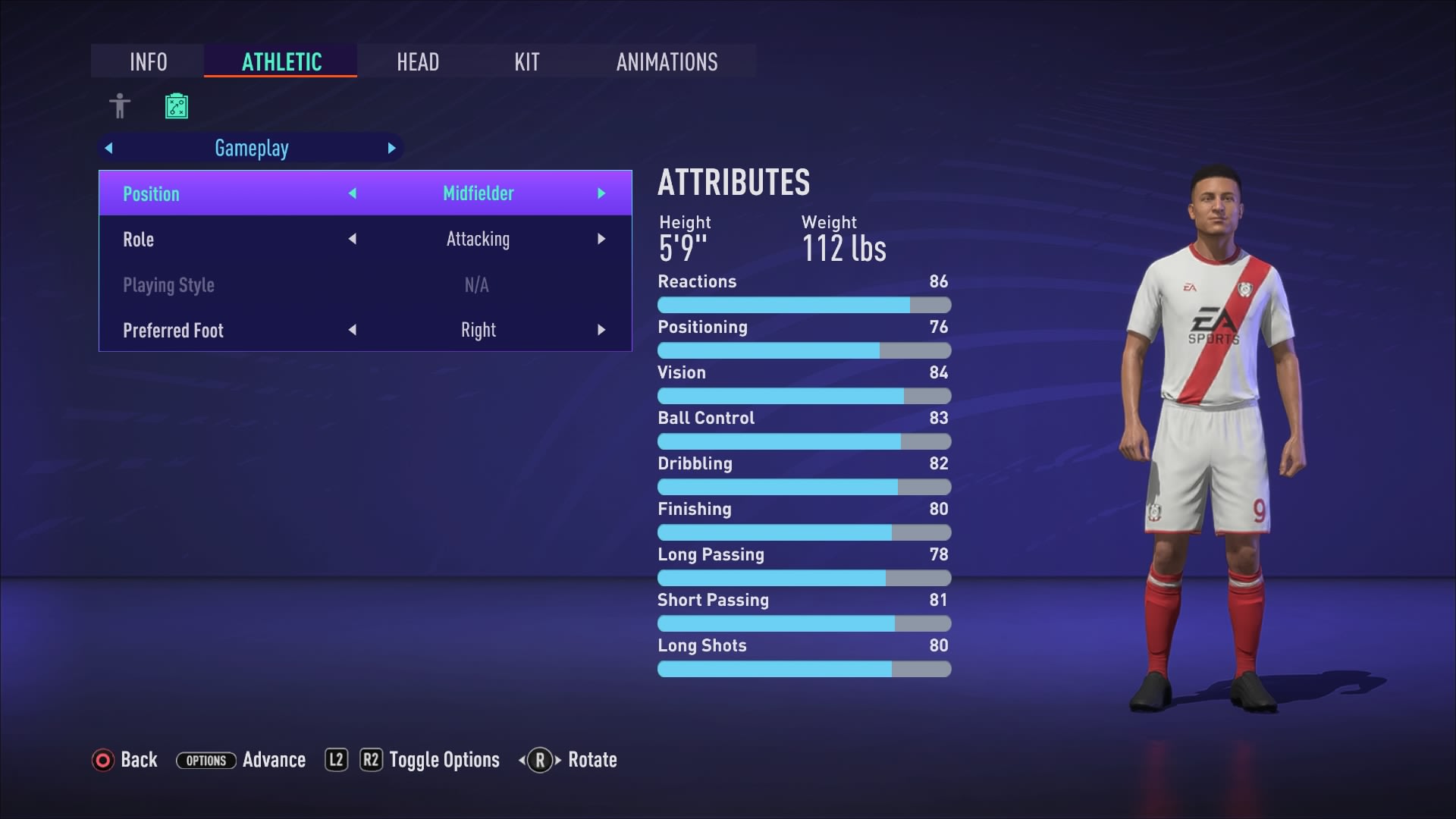 Necesitas un buen motor para jugar de medio centro ofensivo. Se necesita un jugador con buena resistencia para impulsar el juego hacia adelante, por lo que la aceleración y el regate son áreas clave para el ataque, junto con la visión, el pase y el disparo. Una complexión de alrededor de 1,80 m ofrece un buen impulso a la velocidad sin sacrificar demasiado volumen, y debe combinarse con un peso de alrededor de 65 a 75 kg.