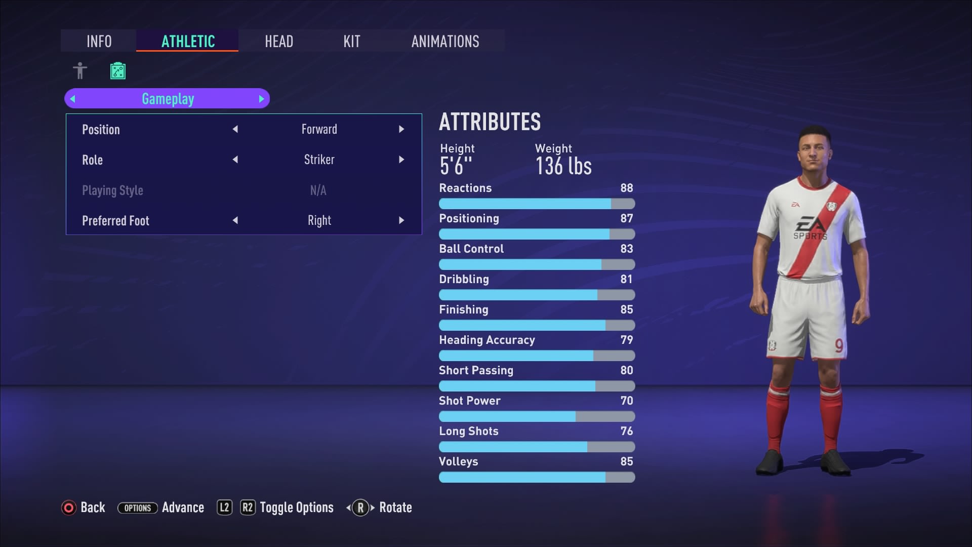 Aun así, no importa lo rápido que hagas a tu defensor, lo más probable es que los delanteros sean aún más rápidos, por lo que necesitas una mezcla de ritmo y fuerza para ganar ventaja sin ceder demasiado terreno. 1,80 m con 77 kg te da un volumen decente, un buen control en el aire, sin ser demasiado lento y pesado.