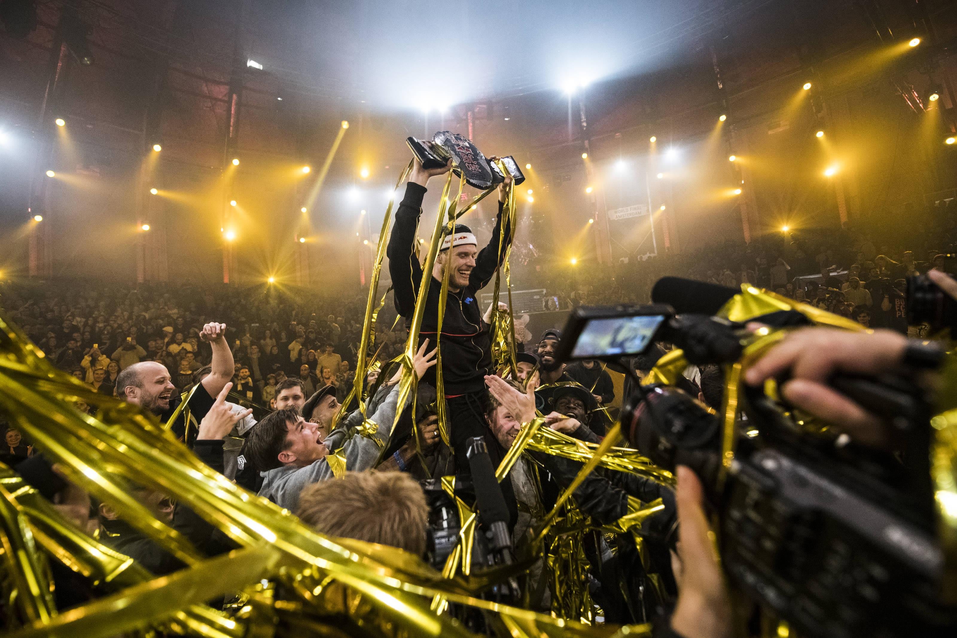 Menno levanta el trofeo después del Red Bull BC One World Final 2017.