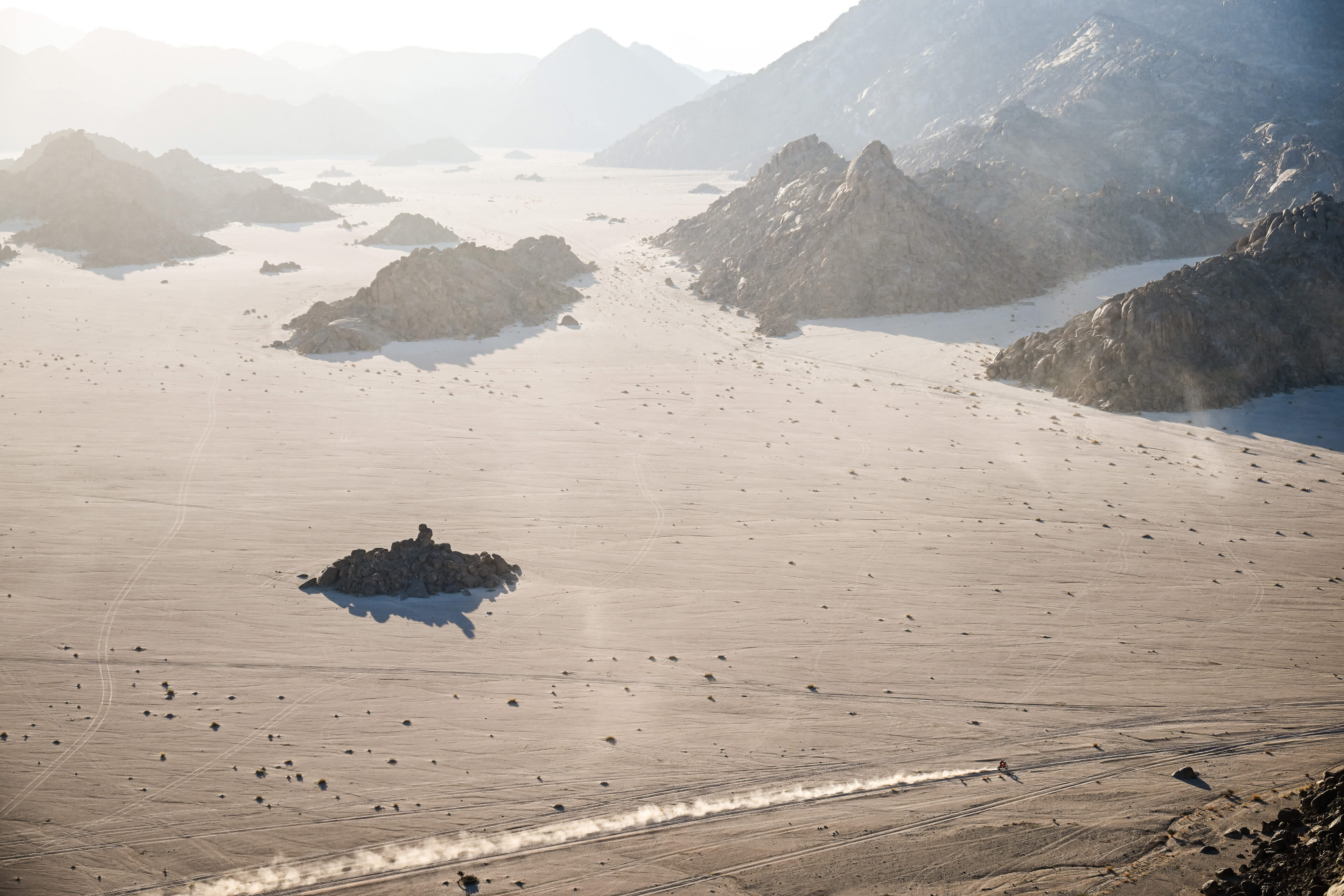První etapa povede z přístavního města Yanbu znovu do okolní pustiny, tentokrát na více než 300 kilometrech ostrého závodění. „Bude to lehčí než loni, nebojte,“ říká s úsměvem David Castera, skoro jako by mluvil o dovolené. „Čeká nás pestrá trať s nádhernými údolími a kamenitými pasážemi.“