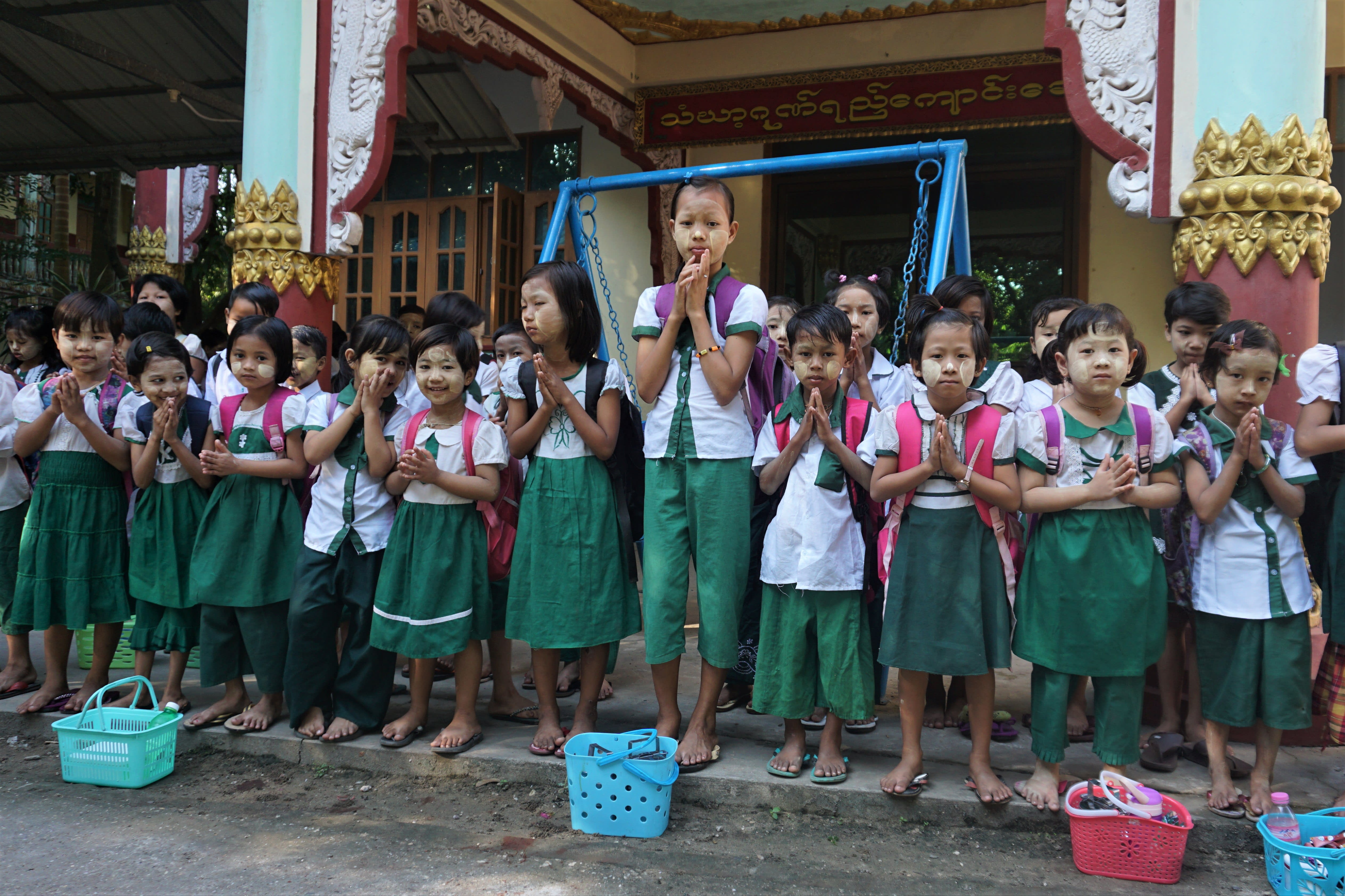 Základní školy v Myanmaru fungují jako soukromé, státní a klášterní. Školy soukromé jsou pochopitelně pouze pro děti z velmi majetných rodin. Rodiče platí velmi vysoké školné, pomůcky, učebnice, uniformu atd. Školy státní jsou sice bezplatné, ale rodiče stejně musí zaplatit uniformu a veškeré školní pomůcky včetně učebnic. No a v poslední řadě jsou tu školy klášterní. Jak jsem už zmínila, Myanmar je velmi chudou zemí a rodiče si ne vždy mohou dovolit děti do školy posílat. Není zde povinná školní docházka, děti z chudých rodin musí často pracovat a vydělávat si na živobytí a samotní rodiče si nemohou dovolit platit za školní vybavení. Myanmar je však velmi buddhistická země, kde mniši v buddhistických klášterech dostávají vysoké peněžní částky od věřících, a tak se v areálech klášterů začaly budovat školy pro chudé děti.