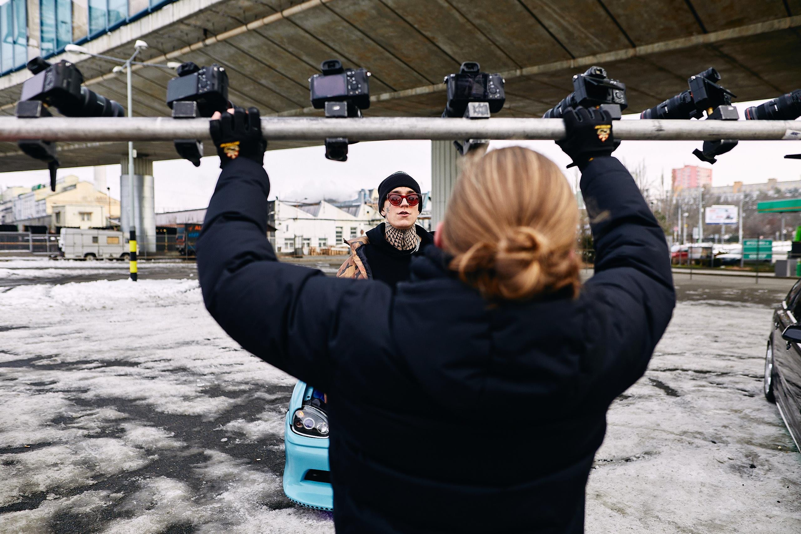 Přesně tak, využili jsme celkem 7 kompaktů, abychom vytvořili efekt, který ale nevím, jak pojmenovat haha. V podstatě jsme vytvořili osu, na kterou jsme umístili všech 7 kompaktů s rozestupem několika centimetrů. Na natáčení jsme ji umisťovali před lidi, kola, oblečení a vždy jsme všech 7 fotoaparátů naráz spustili. V postprodukci jsem pak měl možnost mezi všemi 7 úhly "cestovat", "zastavovat čas" a všechno, co je ve videoklipu vidět.