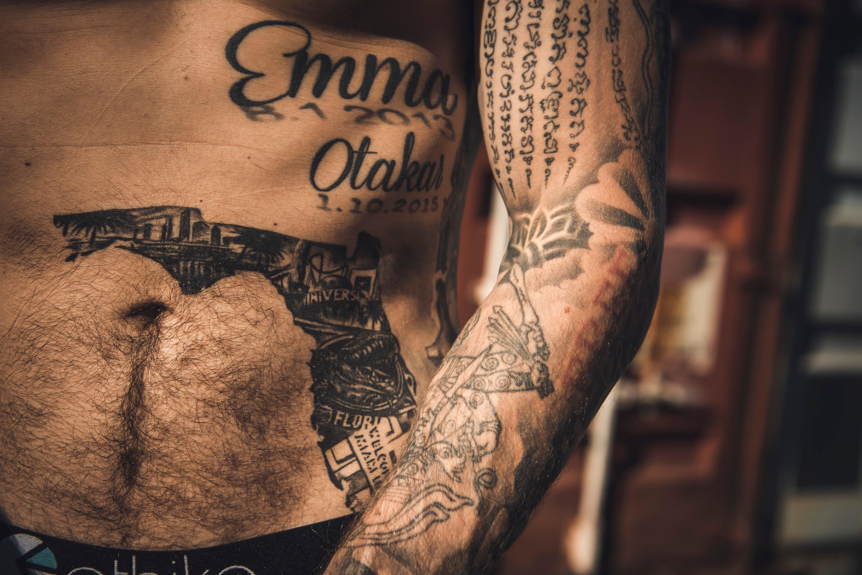 Naposledy jsem byl před měsícem a nechal jsem si vytetovat Floridu, protože tam jezdím několik let po sobě. Mám tam hranice a jejich monumenty, i když jich moc nemají. Takže tam jsou vesměs horský dráhy a krokodýli.