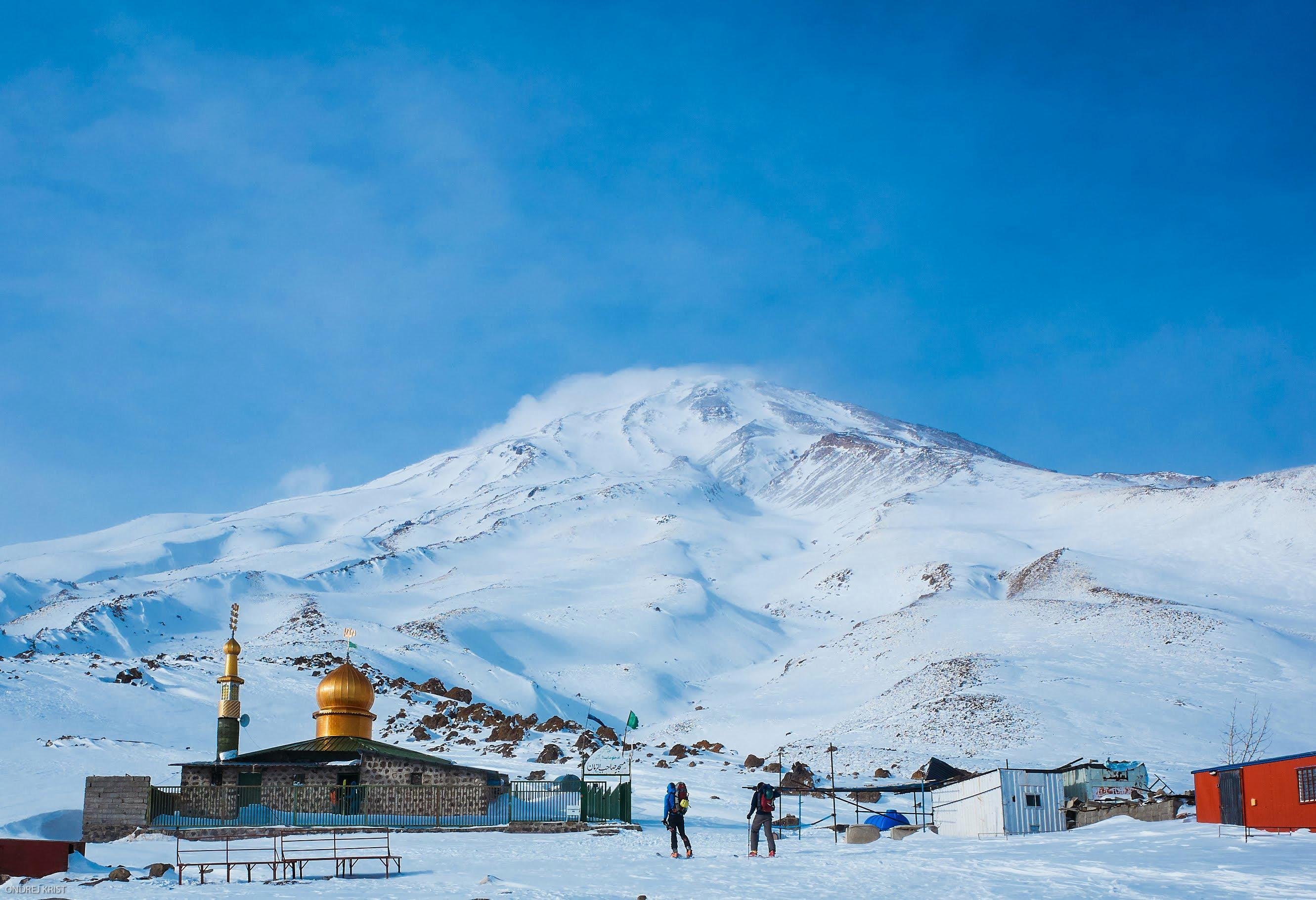 Část naší skupiny měla v plánu výstup na nejvyšší Íránskou horu, sirnou sopku Damavand. Marně se jim to snažil Abbas vymluvit historkami o krutosti místního počasí, teplotám pod -30 °C, větru o osmdesátikilometrové rychlosti a o návratech expedic s omrzlými kusy obličeje. Hoši byli ale odhodláni pokořit tajemství „faceless mountain“ a po pěti dnech v Dizinu zamířili přes Teherán pod 5600 metrů vysokou sopku.