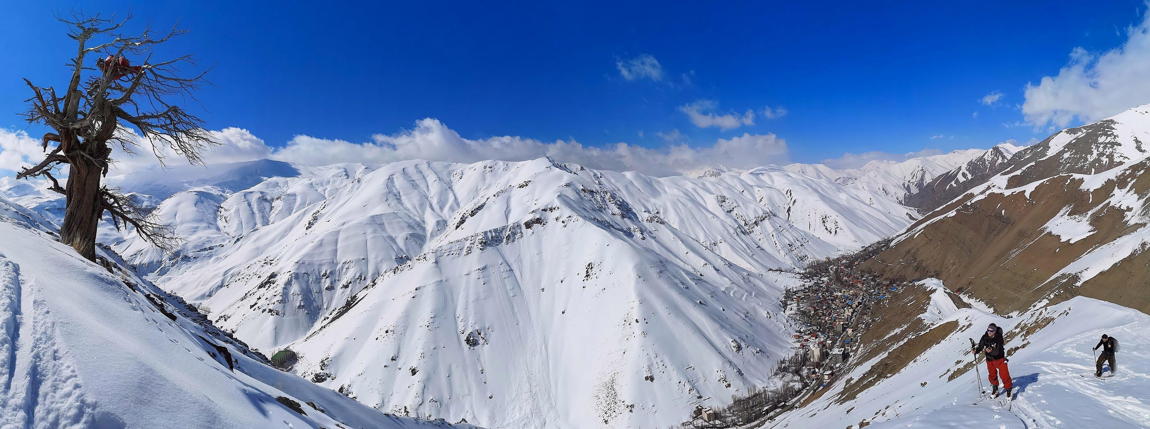 Do sousedního Darbandsaru se dá po chvilce šlapání sjet krásnou lajnou a vrátit se zpět buď taxíkem, nebo po svých. Okolní kopce navíc nabízejí nekonečné možnosti pro šlapání. Dva dny jsme strávili i powhuntem v terénu, jeden den za doprovodu místního skialpového velmistra, který nás nejen že vzal na krásné backcountry kolem mytického místního stromu s originálním názvem Mr. Tree, ale navíc ohromil i svou schopností sundat si tulení pásy ve výskoku jedním švihem a zůstal při tom pořád zapnutý ve vázání. Styl!