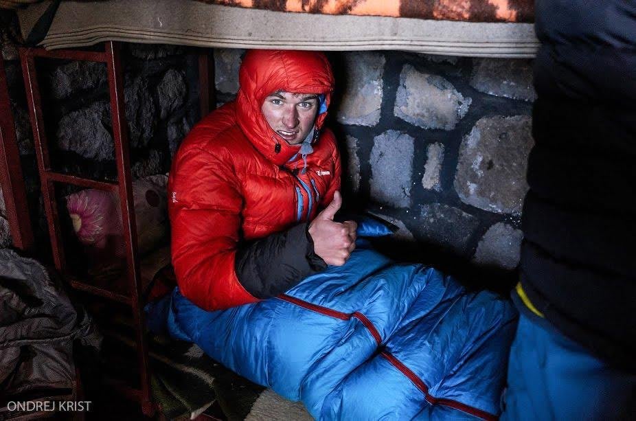 Těžko říct, kolik bylo stupňů, ale nazval bych to ,,zima jako svině” a první polovinu výstupu fučelo jak mamutovi z dupy.