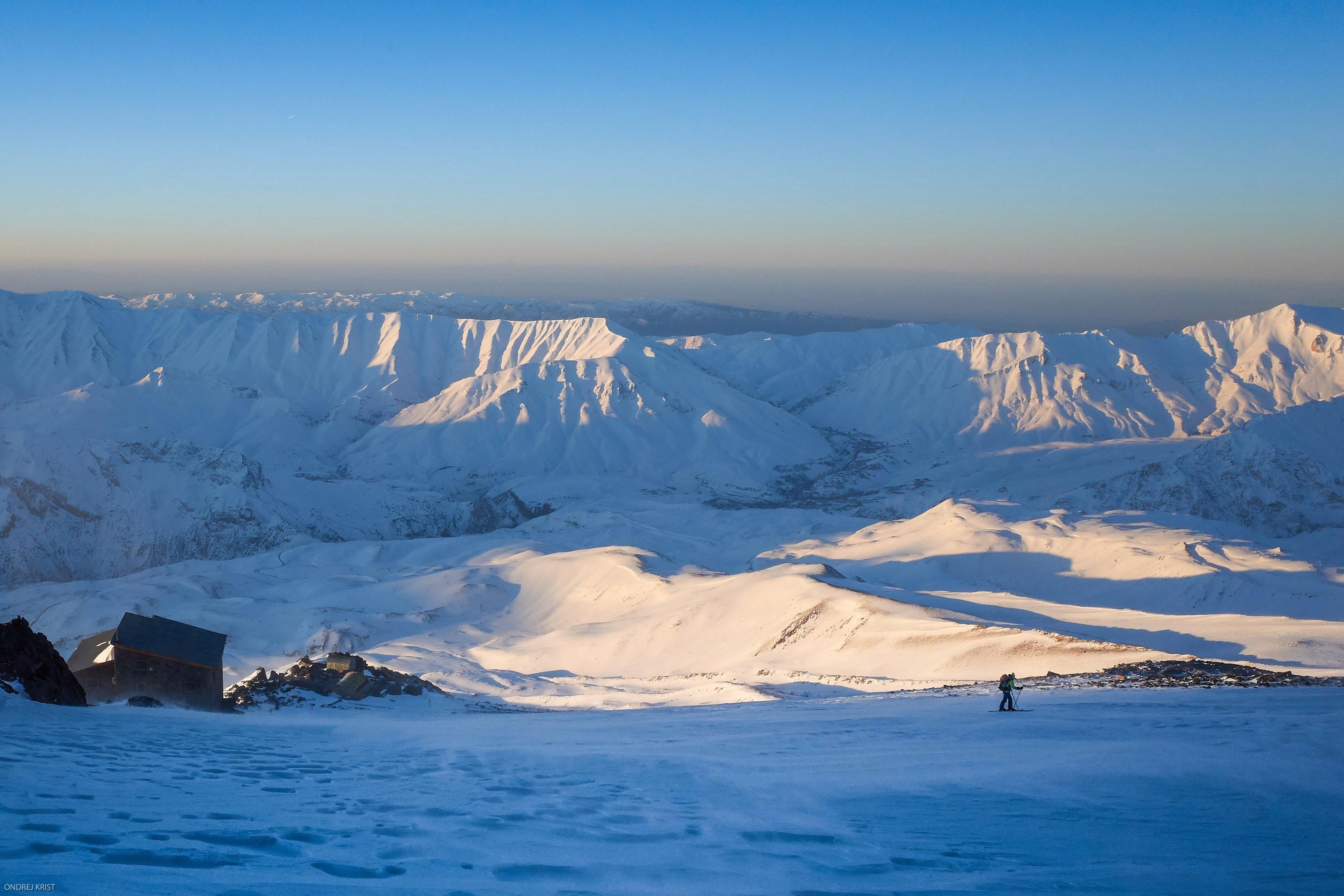 Dobré ráno, Íráne! Teherán je megapole, které říká domov více než 15 miliónů lidí. Když ve 4 ráno přilétáme, jeho siluetu zastiňují majestátní čtyřtisícovky na horizontu. Pro ubytování jsme zvolili jedno z tří Iránských středisek Dizin - Joyja hostel vzdálený přibližně 10 minut od lana. Ostatní dva plánované resorty Shemshak a Darbandsar leží sice kousek na druhé straně kopce, ale cesta je vzimě zasypaná a překvapivě ji nikdo nehodlá zprovoznit.