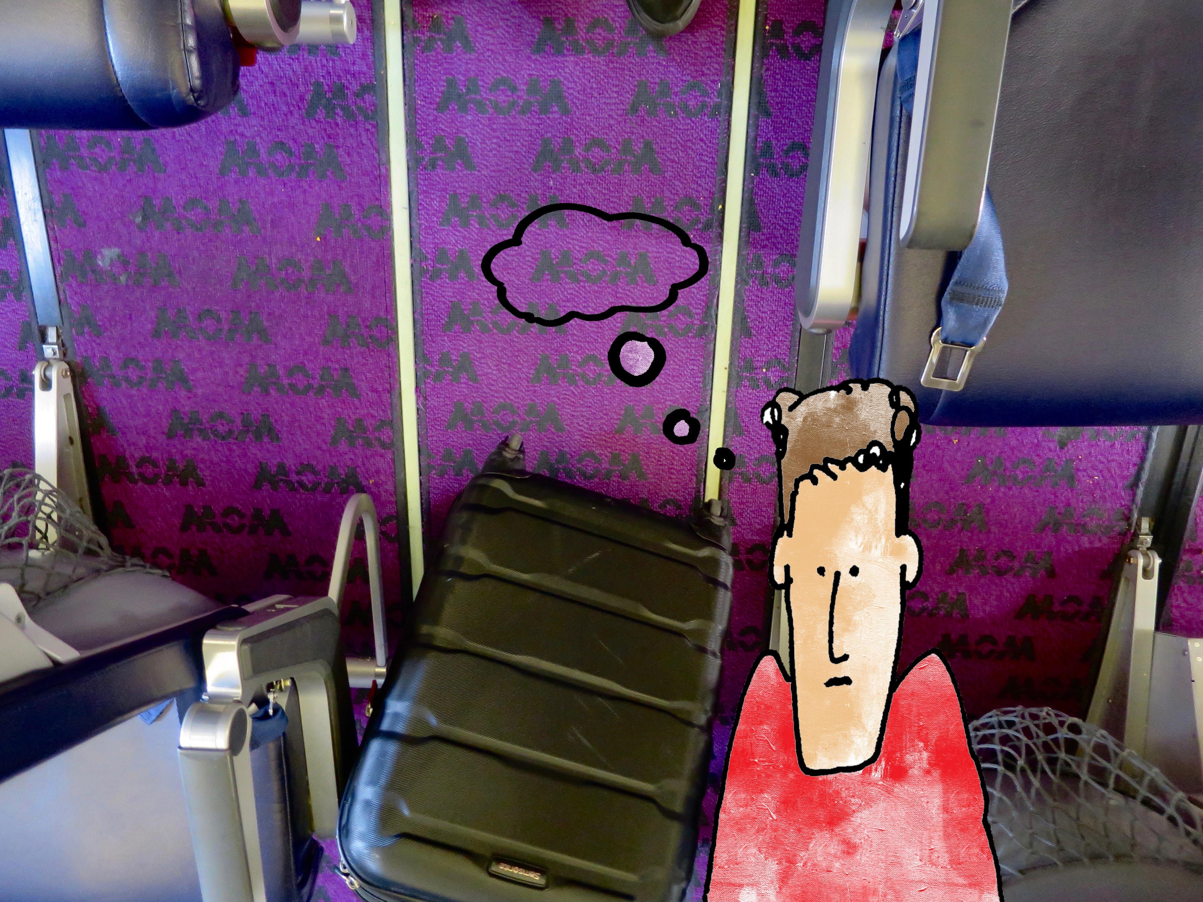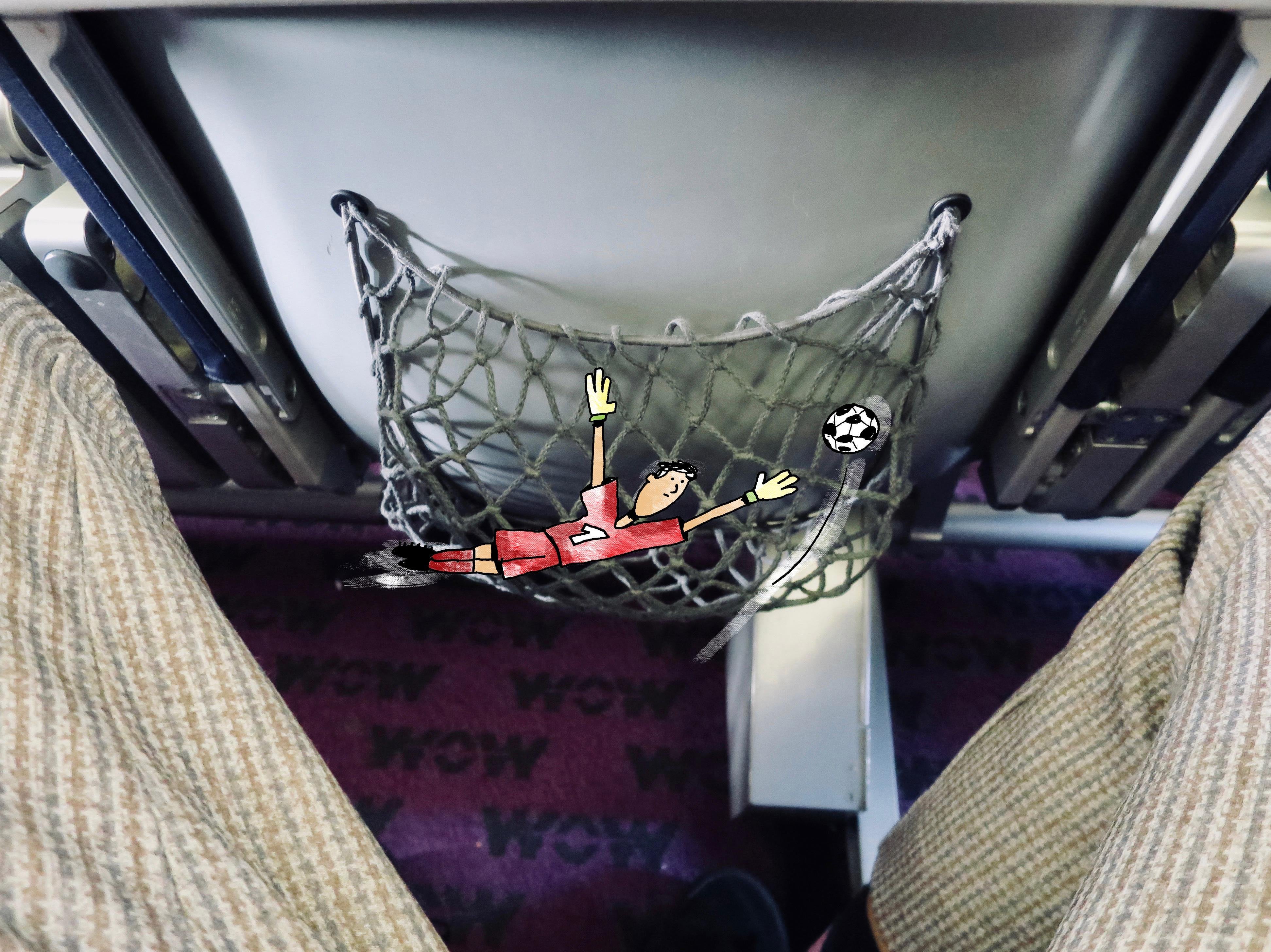 Letadlo mi připomíná, abych si překontroloval všechno důležité a potřebné. Občas lítáme s hlavou v oblacích a zapomínáme. Ano – telefon, sluchátka a pas mám u sebe. Bon voyage.