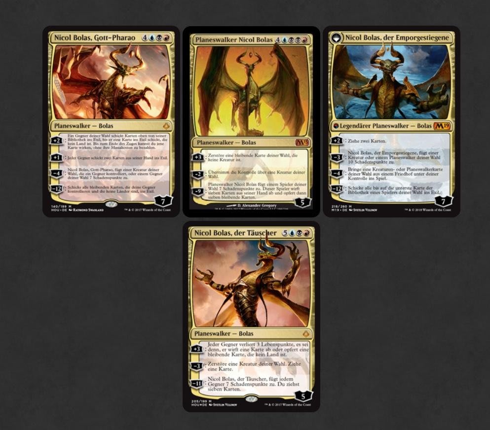Dieser Facettenreichtum spiegelt sich auch in den Charakteren wieder. Wie beispielsweise im Serienfiesling Nicol Bolas: Ein 25.000 Jahre alter Drache, der ein extrem intelligenter Manipulator ist und sich seit der ersten Auflage stark verändert hat.