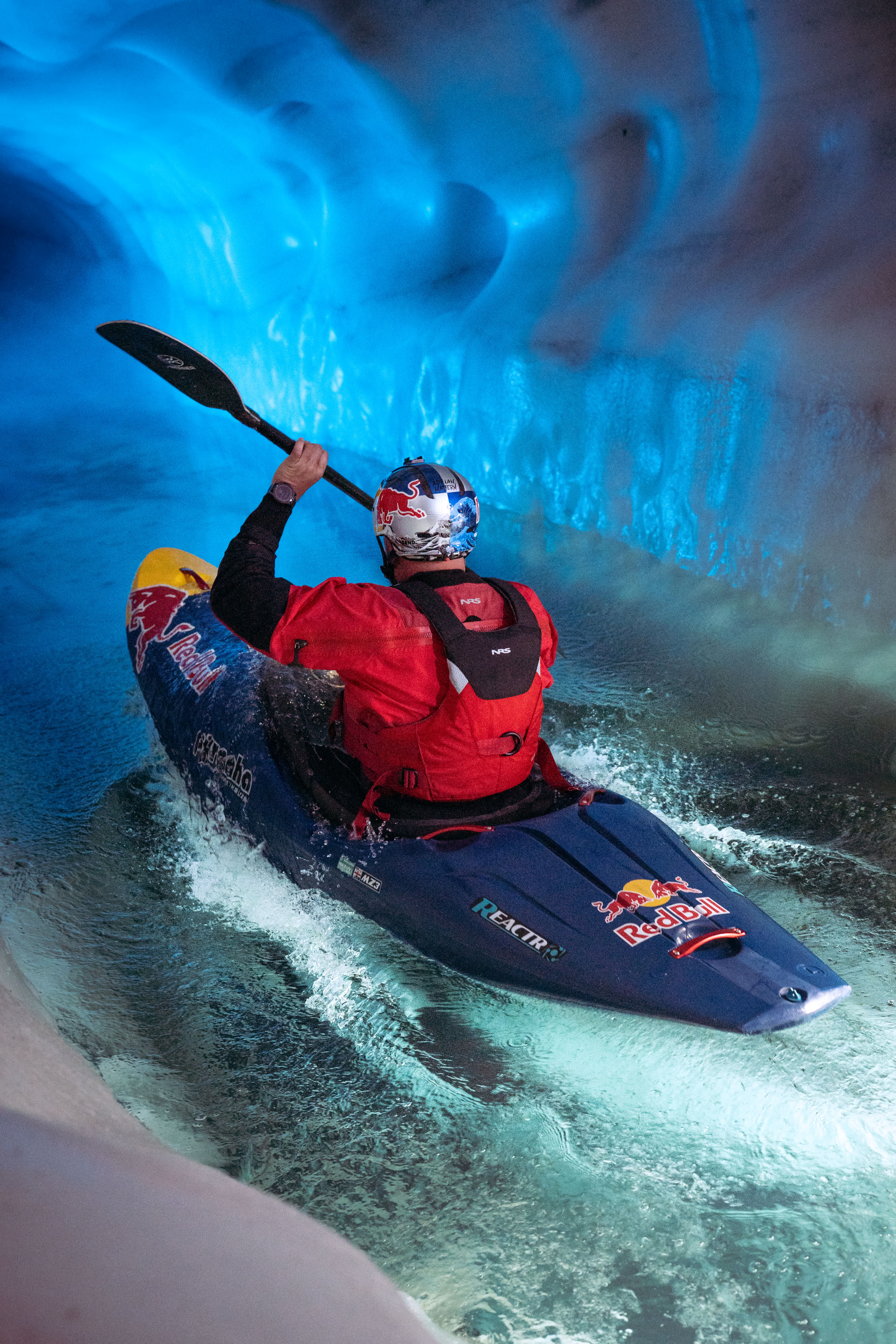 Die Leidenschaft für das Unbekannte hat Kajak-Athlet Adrian Mattern an die entlegensten Orte der Welt geführt – zuletzt in die faszinierende Welt des Natur Eis Palasts am Hintertuxer Gletscher, Tirol.