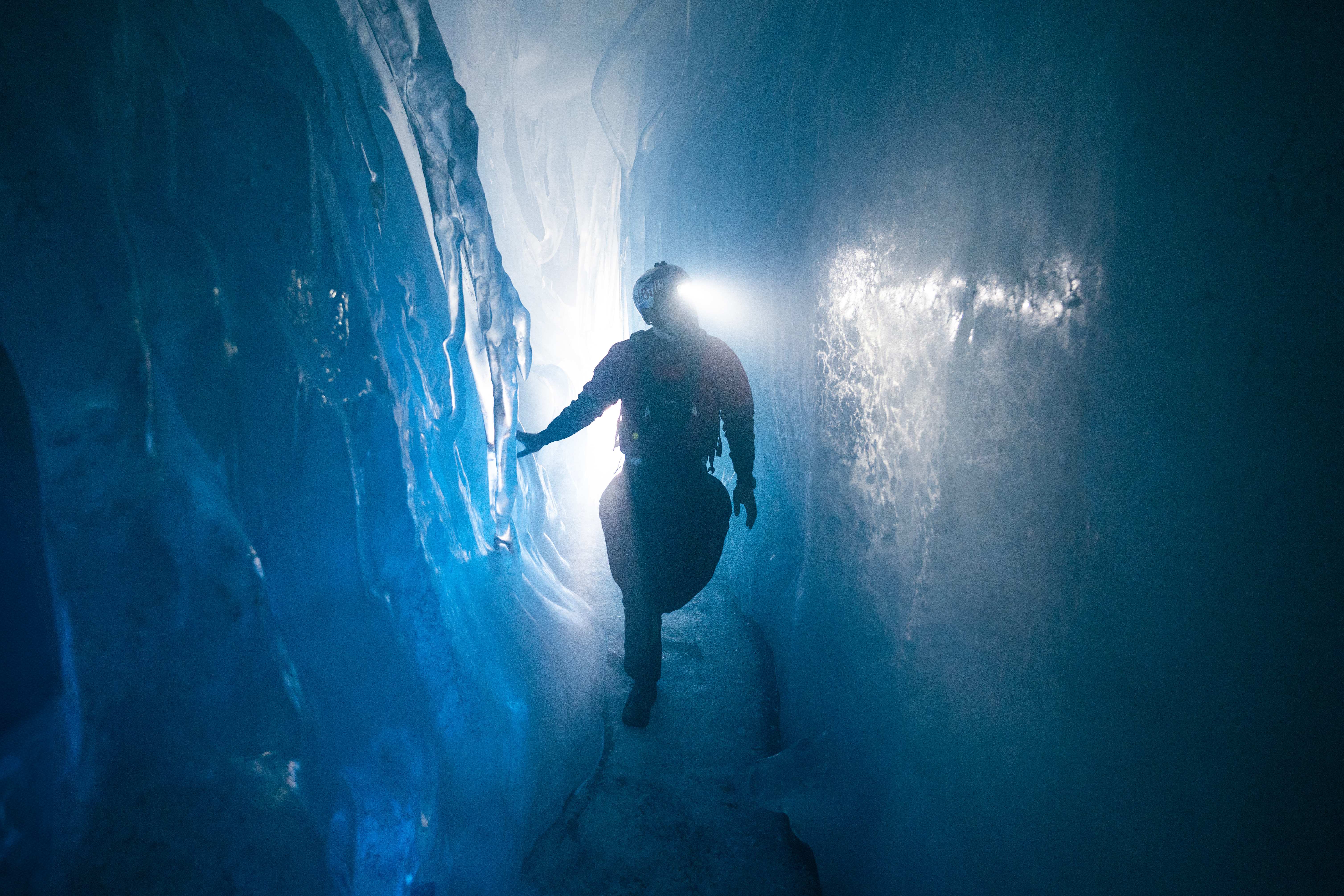 Der 30-Jährige beschreibt die Tour als eine Mischung aus Adrenalin und purem Staunen. Die Gänge sind eng, das Licht mystisch, und der Gletschersee dunkel. "Ein Gefühl, als würde man in einer anderen Welt schweben", sagt Adrian Mattern.