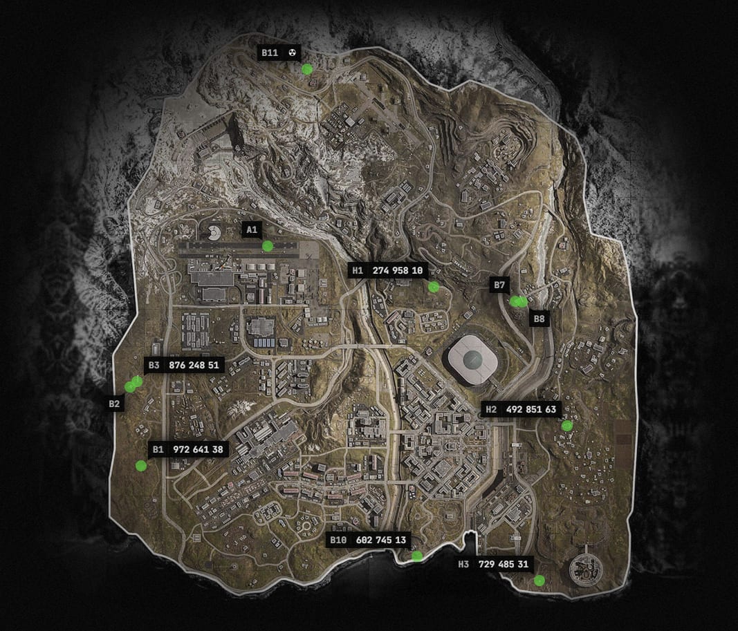 Bereits Mitte 2020 wurde nicht nur das Stadion als begehbare Location hinzugefügt, sondern auch eine Reihe von Bunkern geöffnet, welche mit entsprechendem Loot und vielen legendären Kisten bestückt sind. Jeder dieser Bunker ist es wert besucht zu werden, deshalb wird man dort meist auf mindestens ein gegnerisches Team stoßen. Die Belohnungen wie legendäre Waffen, Rüstungs-Satchel und Killstreaks sind das Risiko allemal wert. Auf dieser Karte sind die Bunker mit zugehörigen Codes verzeichnet.