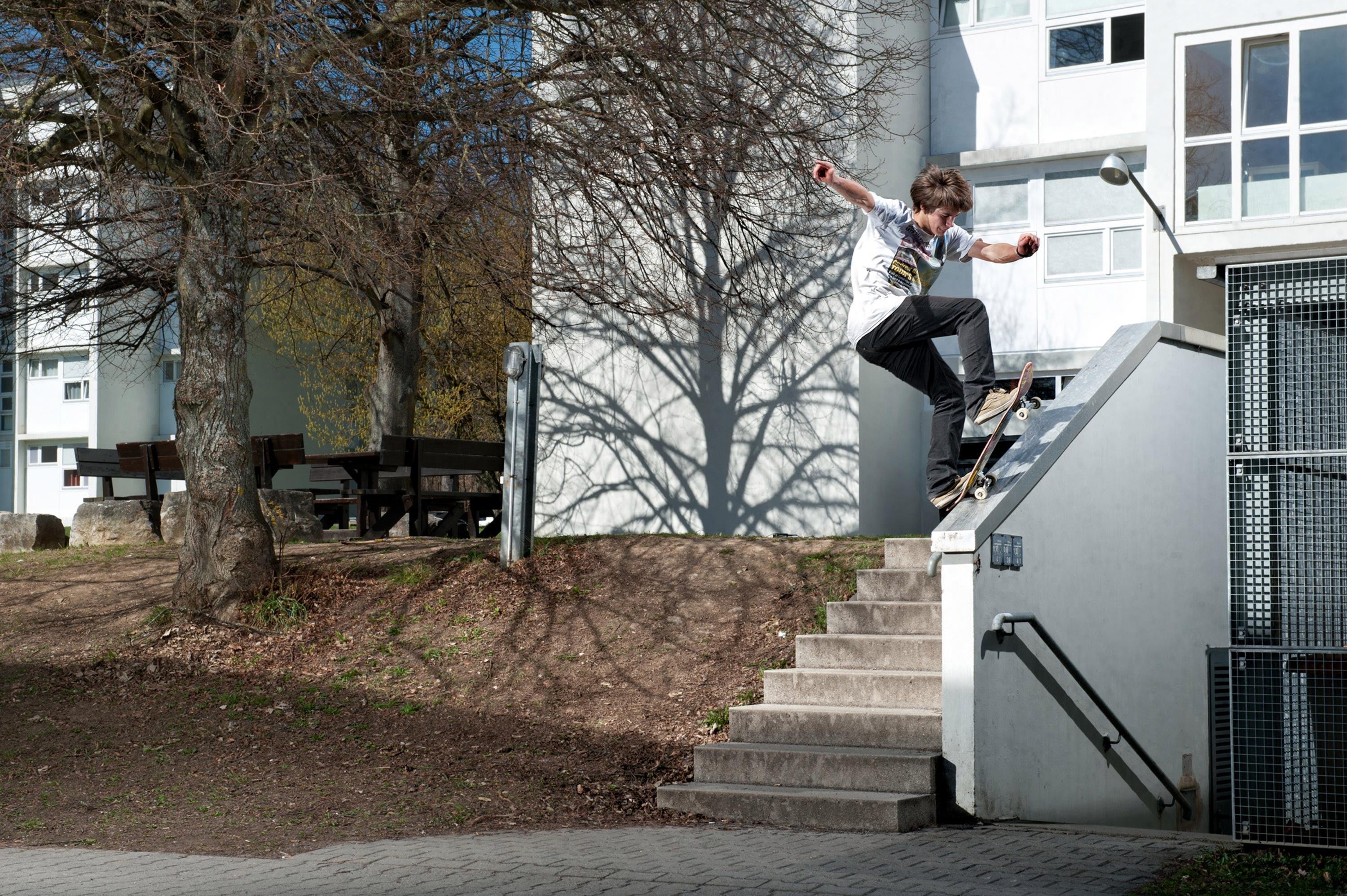 Felix habe ich über Sandro Trovato kennengelernt, als ich vor ein paar Jahren in Stuttgart skaten war. Als Stefan dann nach Ulm gezogen ist, haben wir angefangen zusammen zu arbeiten. Und Daniel kennt ja eh jeder. Für den Part zu filmen war locker, ich kenne die drei ja ganz gut, Felix hatte immer Ideen für Spots und eine Menge organisiert. Bester Mann!