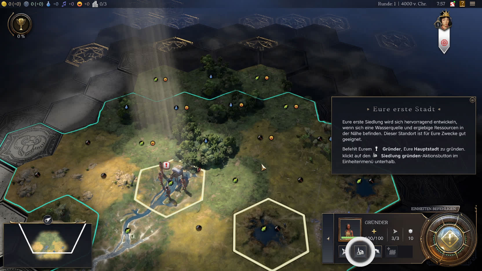 Die unterschiedlichen Anführer kommen mit Boni, die sich auf die vier Grundpfeiler des Spiels fokussieren: Wirtschaft, Kultur, Militär und Wissenschaft. Sobald ihr euch mit dem Grundprinzip des Spiels vertraut gemacht habt, findet ihr hier bestimmt einen Anführer, der am besten zu eurem favorisierten Spielstil passt.