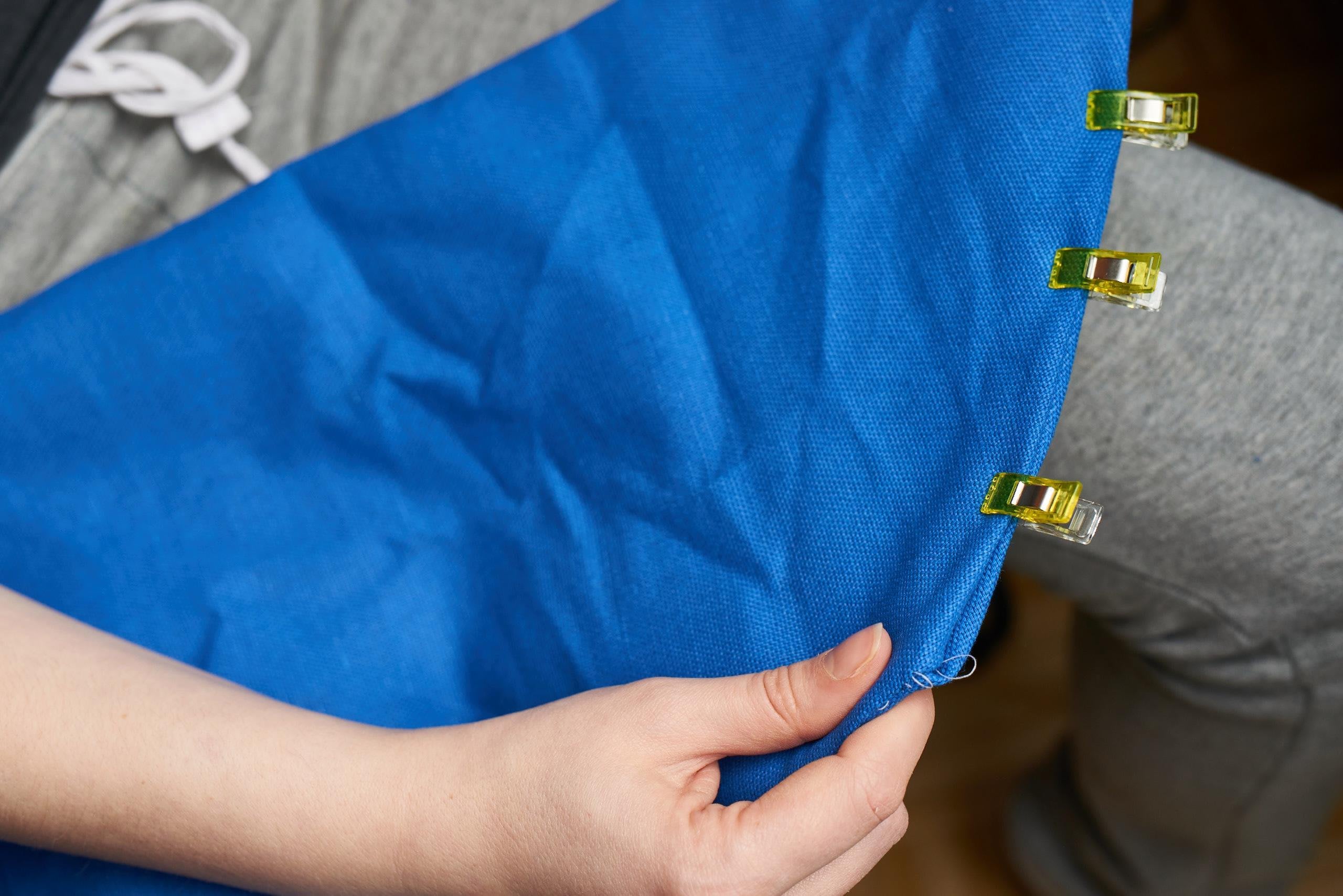 Super wichtig. Meine liebsten Hilfsmittel sind mein lieber Stoffkleber/ Sprühkleber (der kann alles kleben), Wondertape oder Nähklammern. Eignet sich alles gut zum Vorfixieren von Stoffen auf Stoffen. Wondertape ist eine Art doppelseitiges Klebeband, nur halt für Stoff, welches fixierend und auswaschbar ist. Nähklammern nutze ich bei Stoffen die schnell Löcher haben oder mit Stecknadeln verrutschen. Und dass sie größer sind, vergisst man sie nicht so schnell, wenn man zum Beispiel etwas näht oder bügelt.